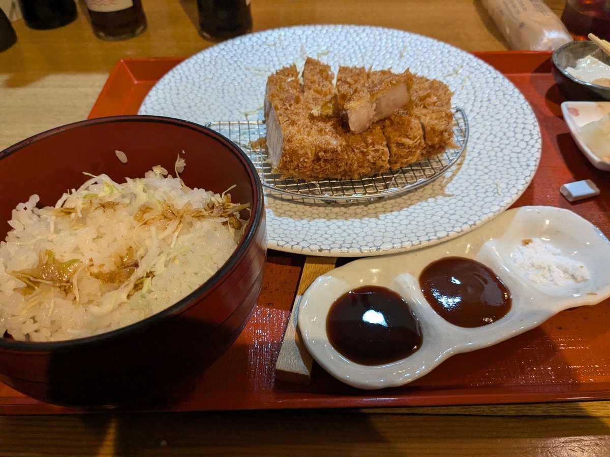 1114神栖お仕事最終日 今日のお昼は #とんかつ東京軒 #とんかつ定食 有名店らしくお昼は人がいっぱい😅 とんかつ美味しいし多かったので ご飯お代わり(100円)しちゃいました😆 水曜木曜は忙しかったので 朝コンビニで買ったおにぎり2つだけでした🥹 pic.x.com/3FSNcpLOgZ x.com/tacchan023/sta…