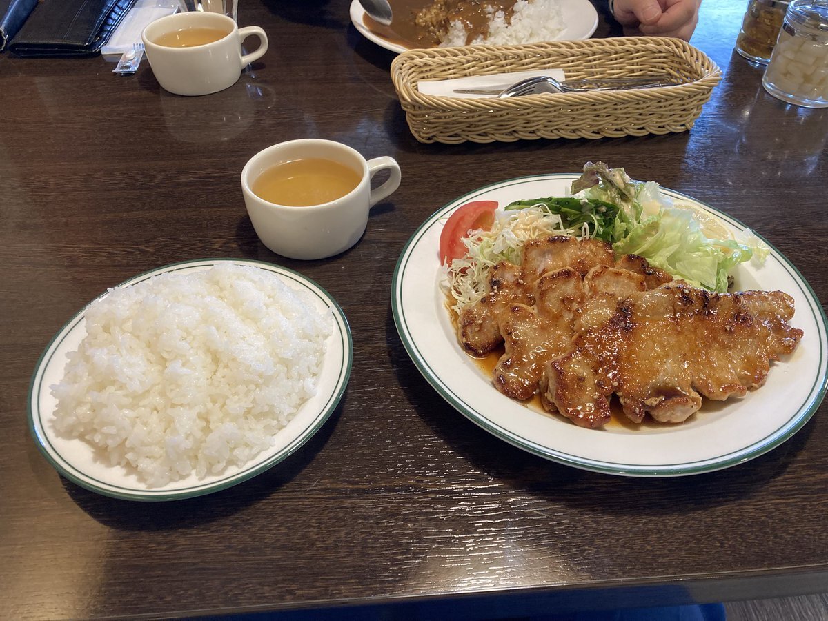 1111神栖お仕事2日目 今日のお昼は #洋風レストランドーム #ポークジンジャー 今日も生姜焼定食 お肉が肉厚で食べ応えばっちり😆 生姜も効いて今日も満足👍 後輩ちゃんナイスチョイス👍 x.com/tacchan023/sta…