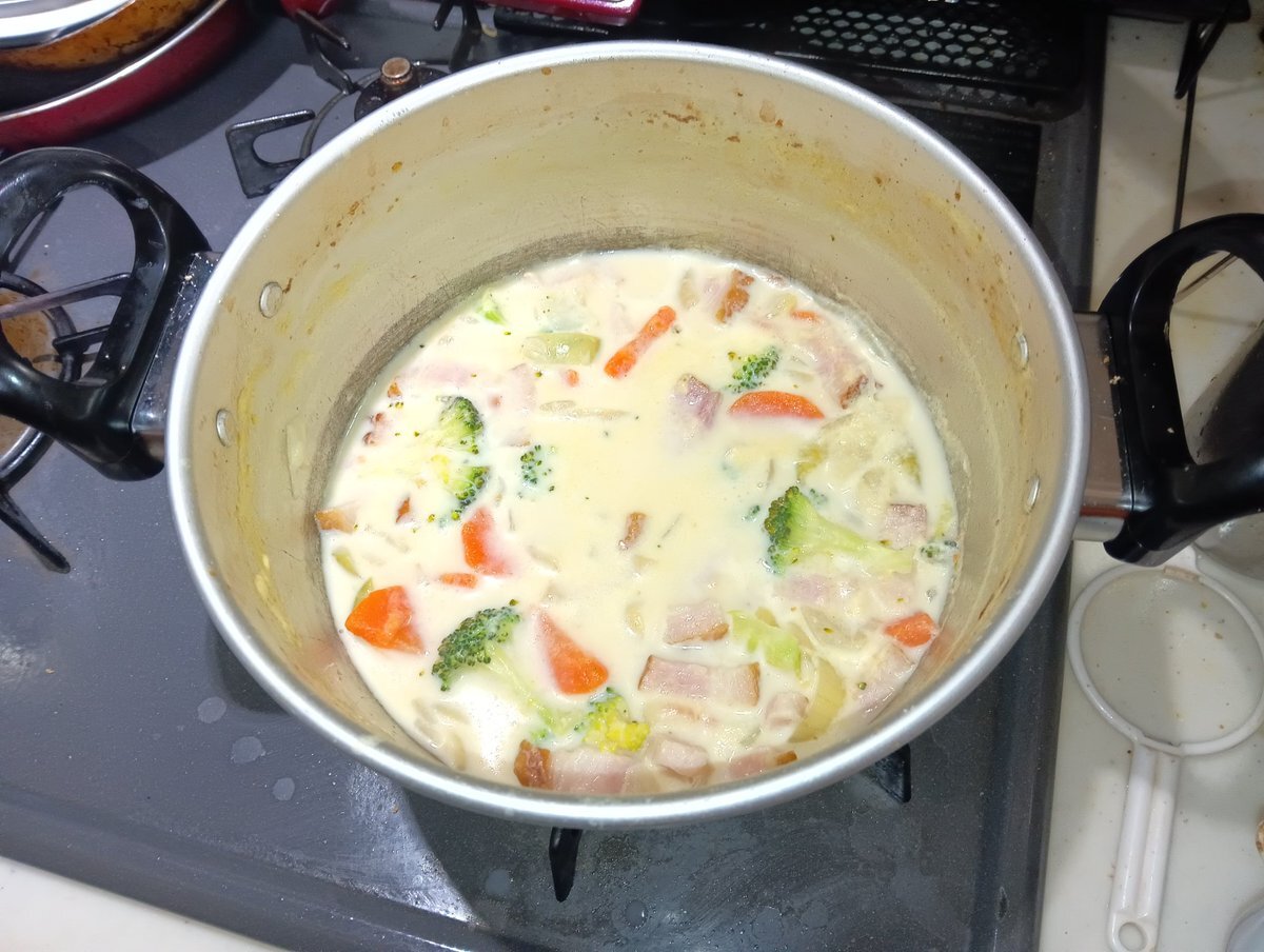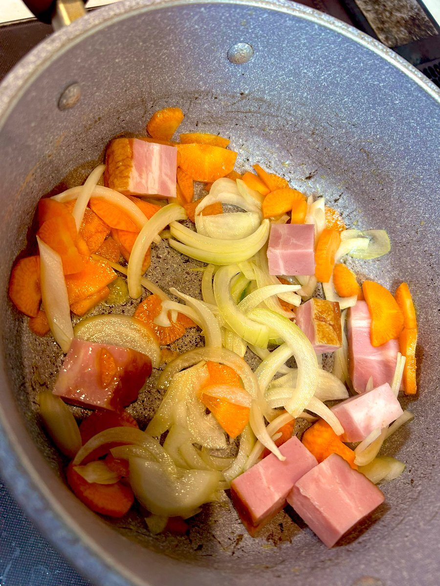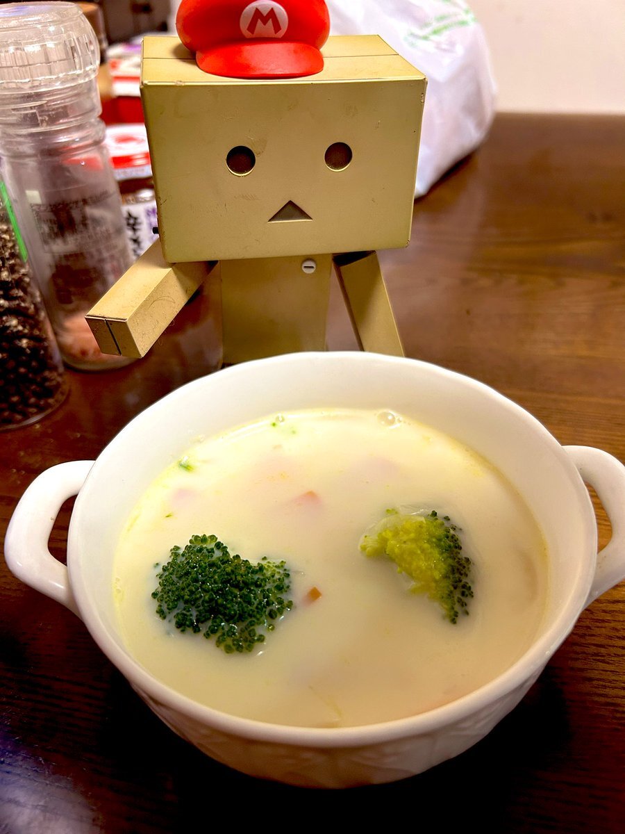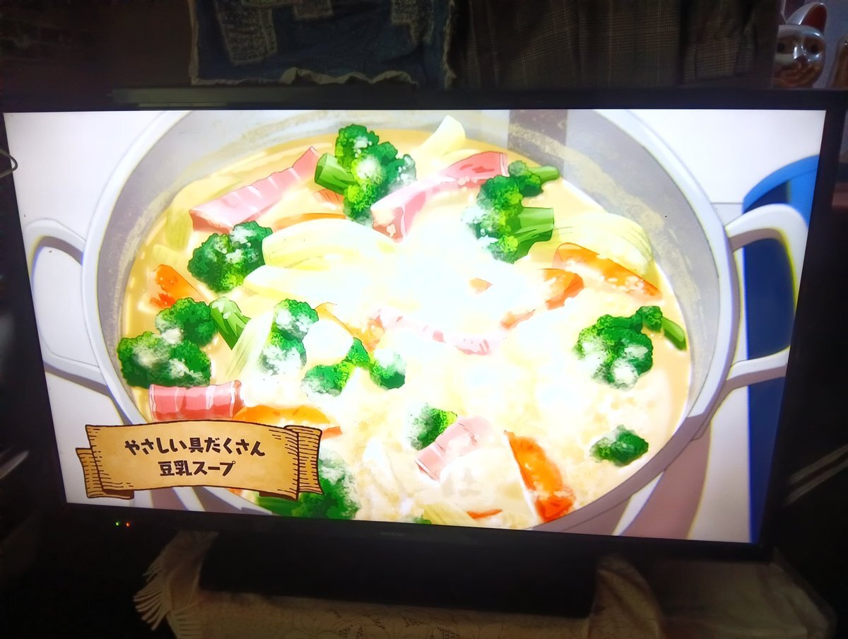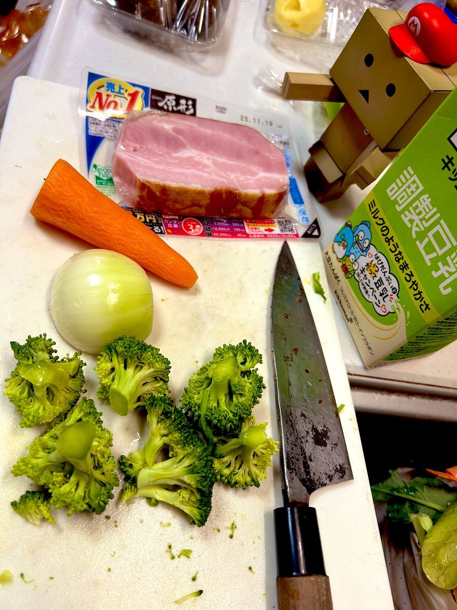 #とんでもスキルで異世界放浪メシ2 #再現レシピ 本日は18話から、お母さんのためにオマケと称して渡した「具材たっぷり豆乳スープ」 今までで1番簡単な気がする。 ベーコン、人参、玉ねぎ、ブロッコリーをそれぞれカット。病人食なので細かく切るのがおすすめ。 鍋にオイルで軽く炒めていきます。 pic.x.com/KtKO4IZ8T0
