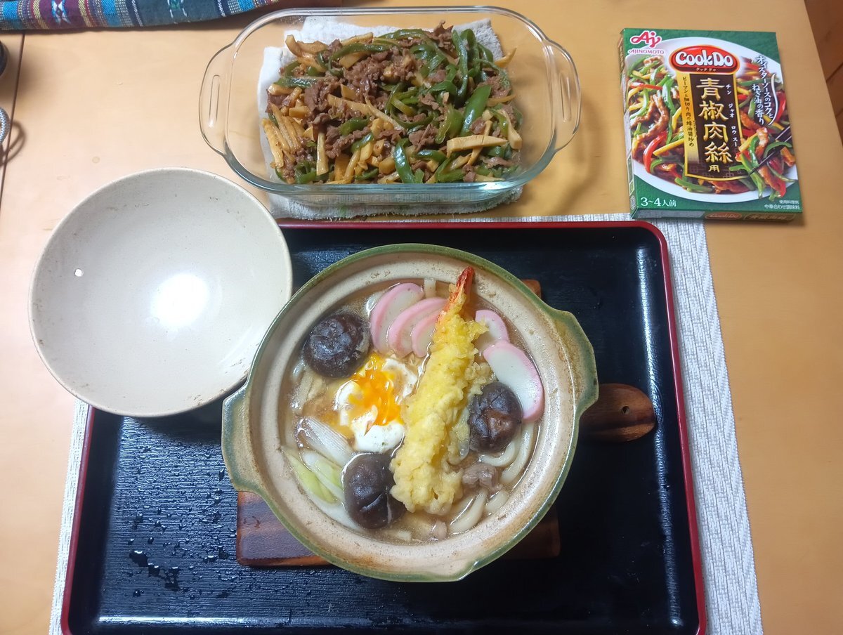 寒いからホントうどんが温まる 青椒肉絲簡単だけど普段だとワザワザ作らんなぁ…初めて作った。 #とんでもスキル再現料理 #とんでもスキル #とんでもスキルで異世界放浪メシ2 pic.x.com/D9qv02yRSl
