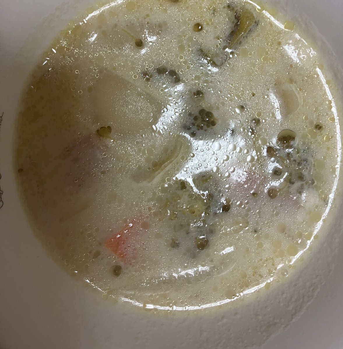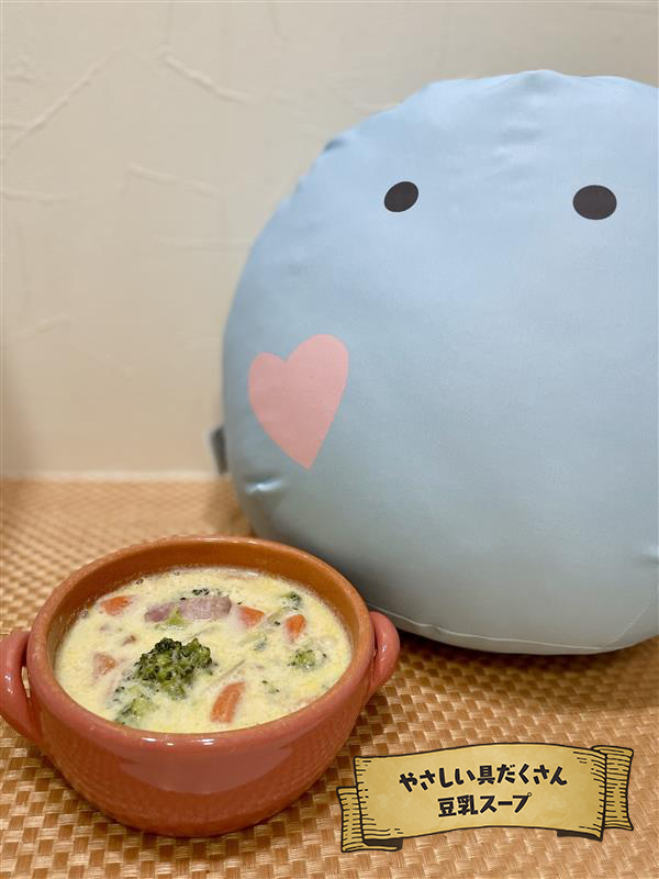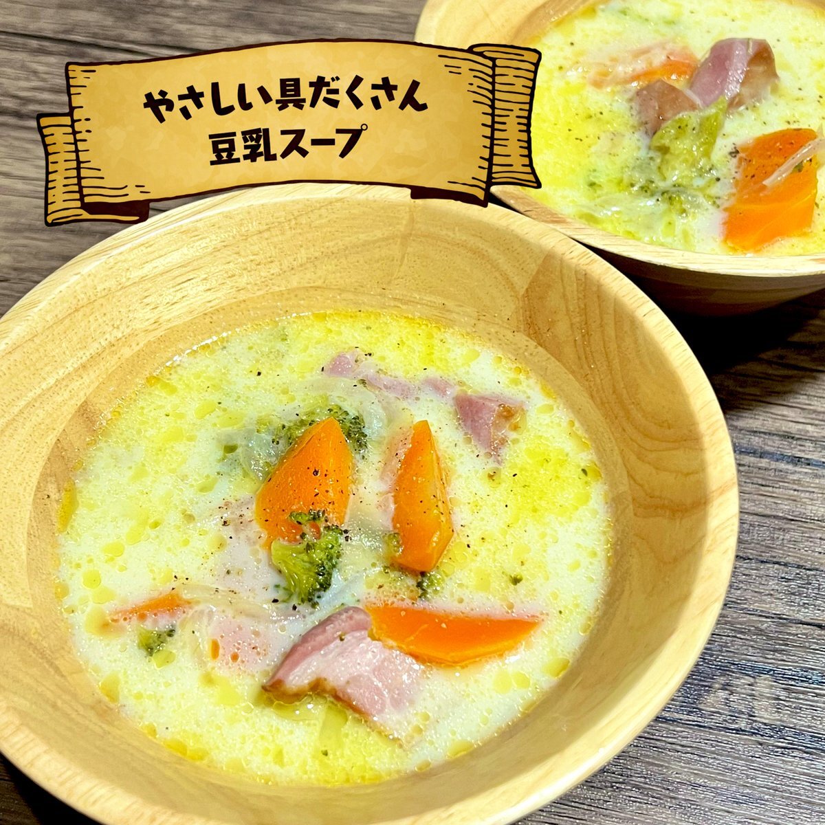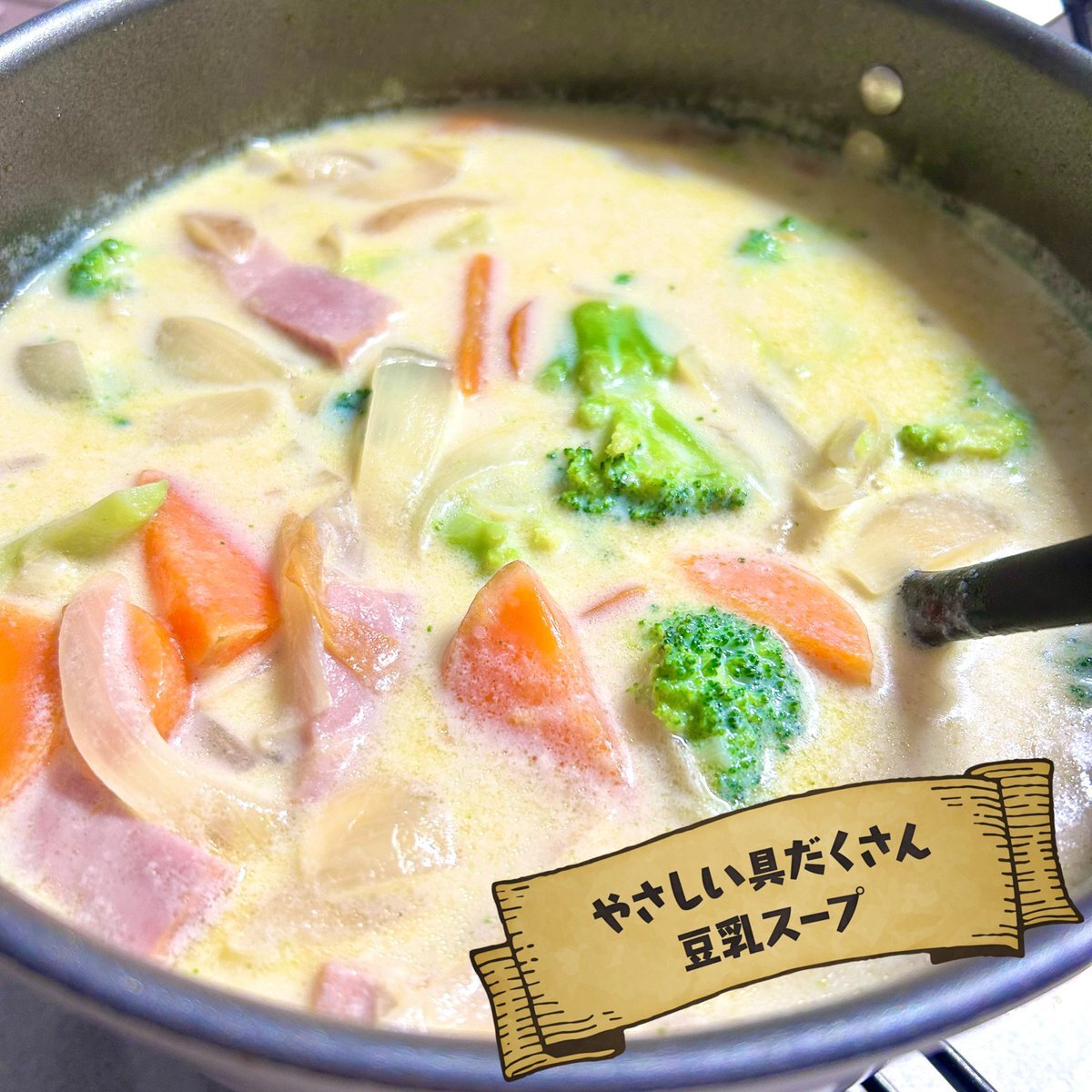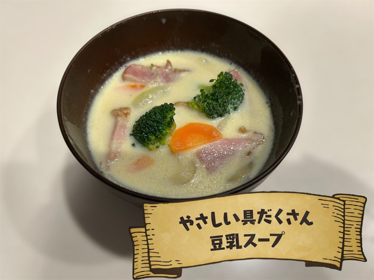 豆乳スープ作ったー、豆乳あんまり好きじゃないんだけど、なかなか食べ応えがあって良かった #とんでもスキル再現料理 pic.x.com/NvQoY17C5T