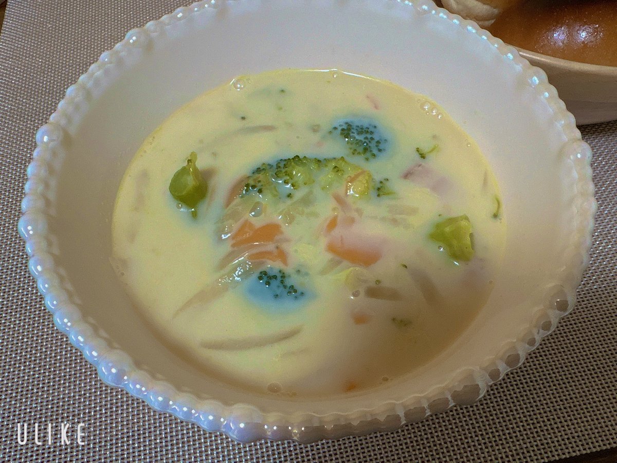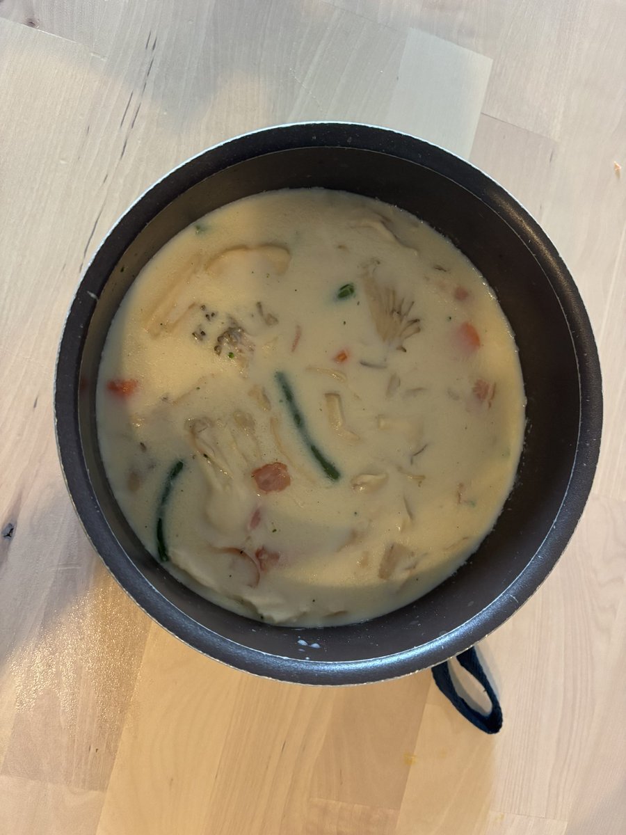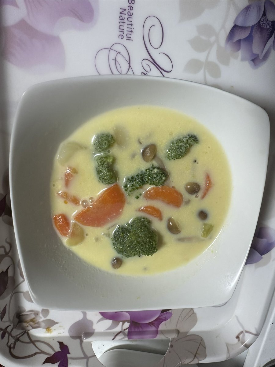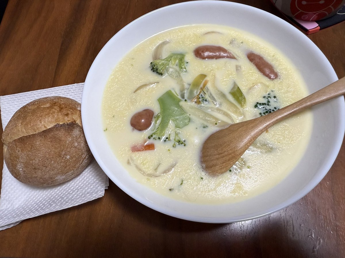 豆乳スープ作ったー、豆乳あんまり好きじゃないんだけど、なかなか食べ応えがあって良かった #とんでもスキル再現料理 pic.x.com/NvQoY17C5T