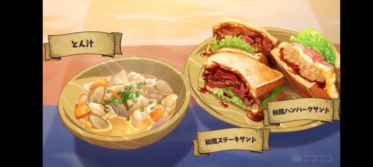 昨日の感情にまかせて作ったった! とんスキ17話より 豚汁 和風ステーキサンド 和風ハンバーグサンド!! #とんでもスキル再現料理 pic.x.com/TJxtDifeQQ