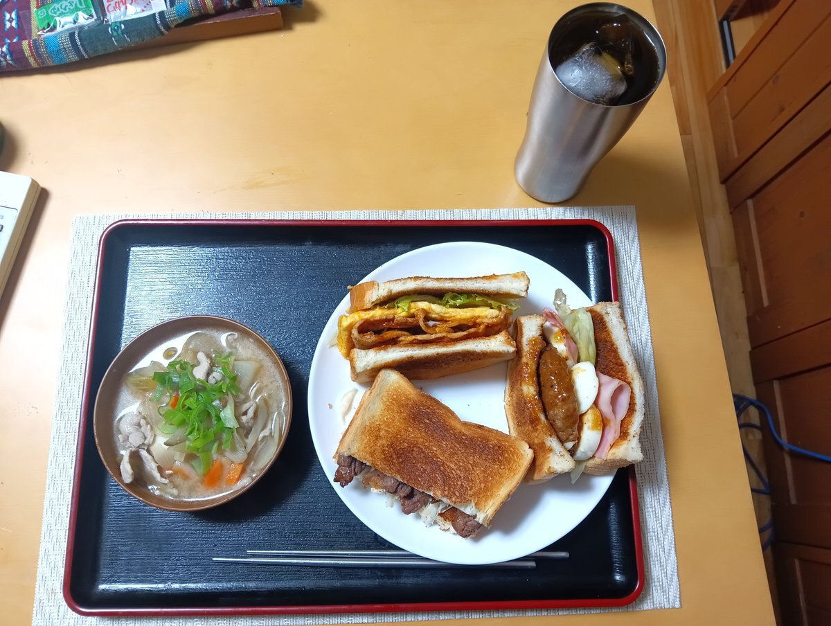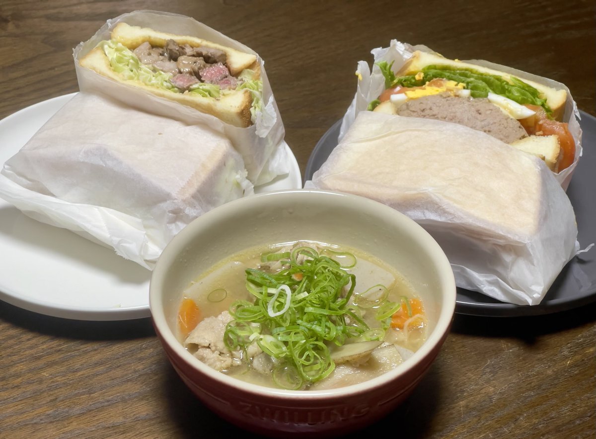 食パンの消費期限今日までだった。 消費しきる為に材料も足りたし3種のサンドまとめて再現。 寒いからこの前作ったけどセット通り一人分で豚汁も作成。 一部多分の具だけど多分合ってる?筈 #とんでもスキル再現料理 #とんでもスキル #とんでもスキルで異世界放浪メシ2 pic.x.com/bMHHhZd4Td