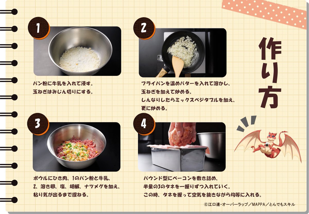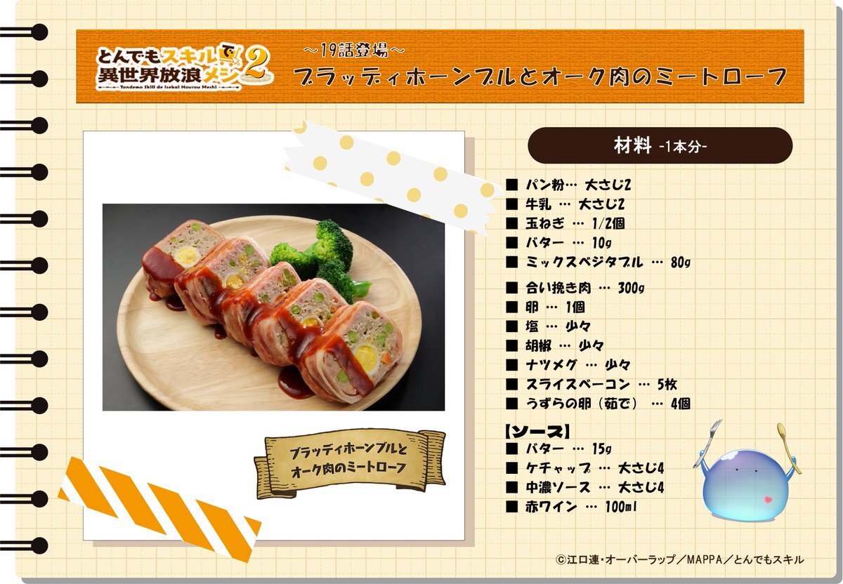 //    #とんでもスキル再現料理 チャレンジ🍳🔥 \\ #とんでもスキル 19話に登場した 「ブラッディホーンブルとオーク肉のミートローフ」レシピをクックパッドで公開‼️ みなさんもぜひ作ってみてください♪ 🔽レシピはこちら cookpad.com/jp/recipes/252… 宣伝スタッフも毎週 #スイ曜日 pic.x.com/fwNNBquKrc