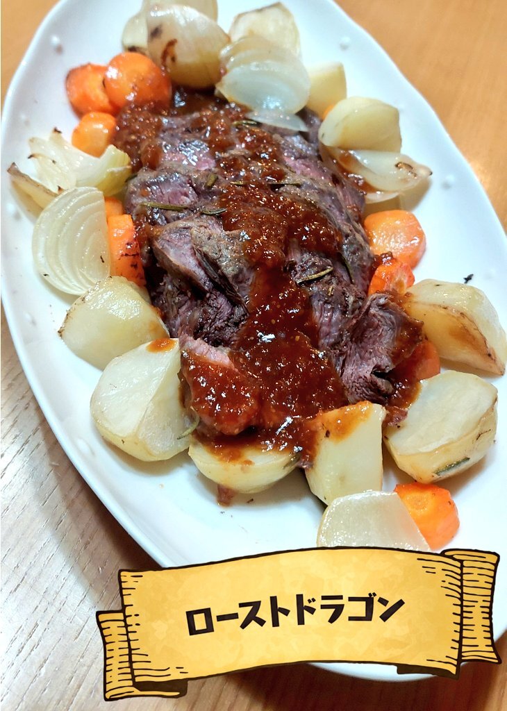 ローストドラゴン作ったよ! アースドラゴン解体に苦労した甲斐あって、家族には好評でした✌ #とんでもスキル再現料理 pic.x.com/OtzShtOl8a