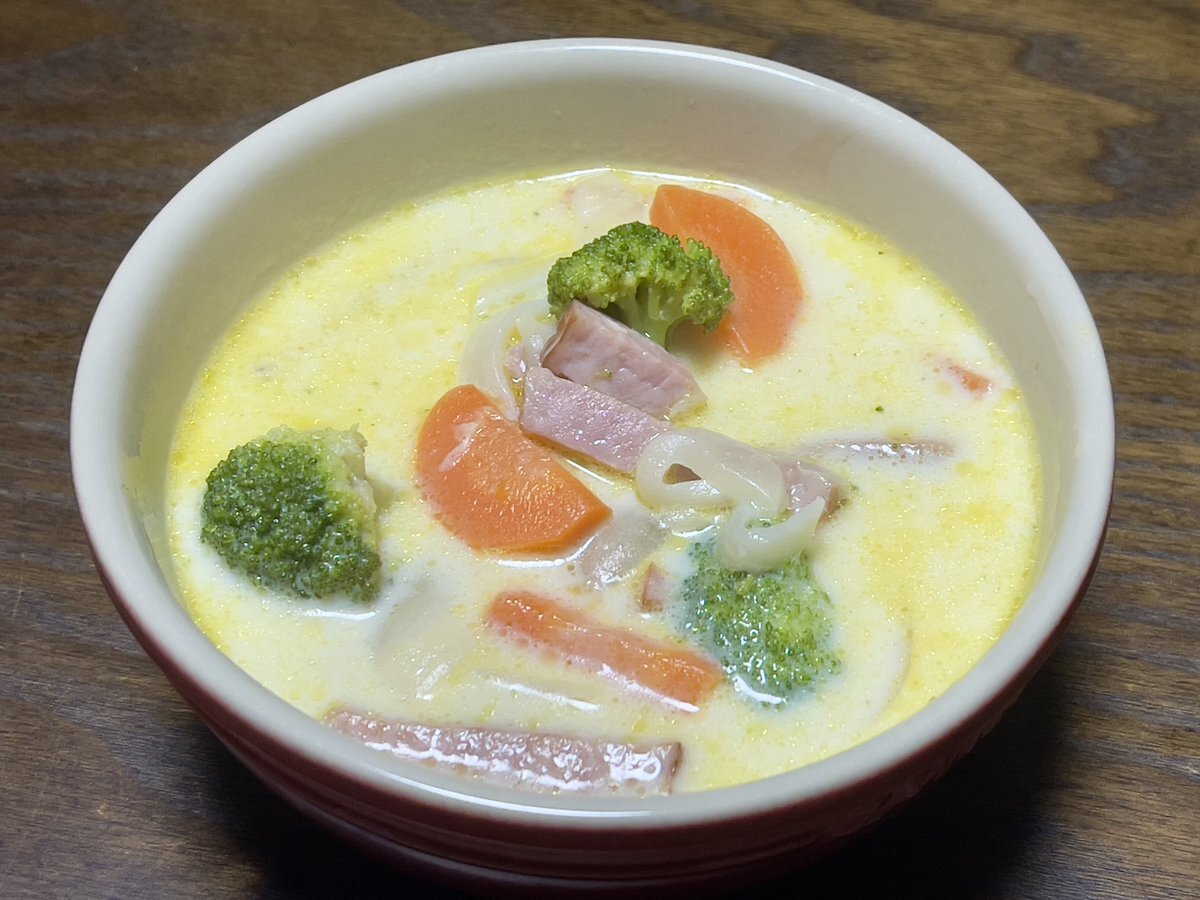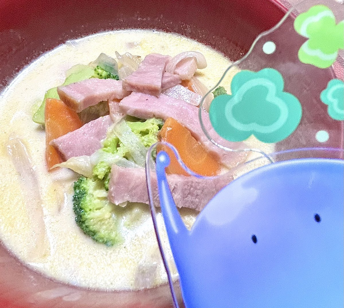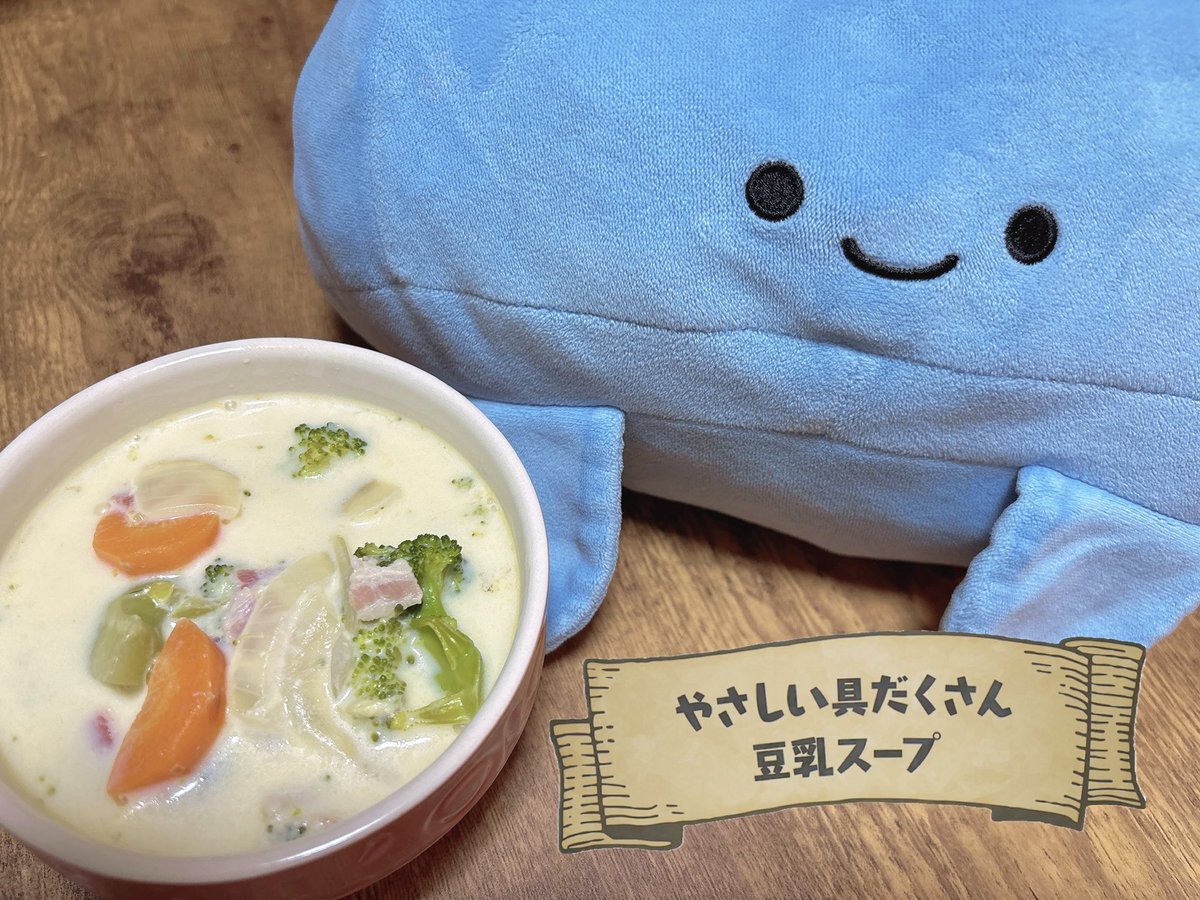 優しい具だくさん豆乳スープ、作ってみました。 ムコーダさんみたいに上手じゃないけど、それでも美味しく作れました。 カボチャを入れたので、少し黄色みかかってます。 #とんでもスキル再現料理 pic.x.com/sNX7w9qS7O