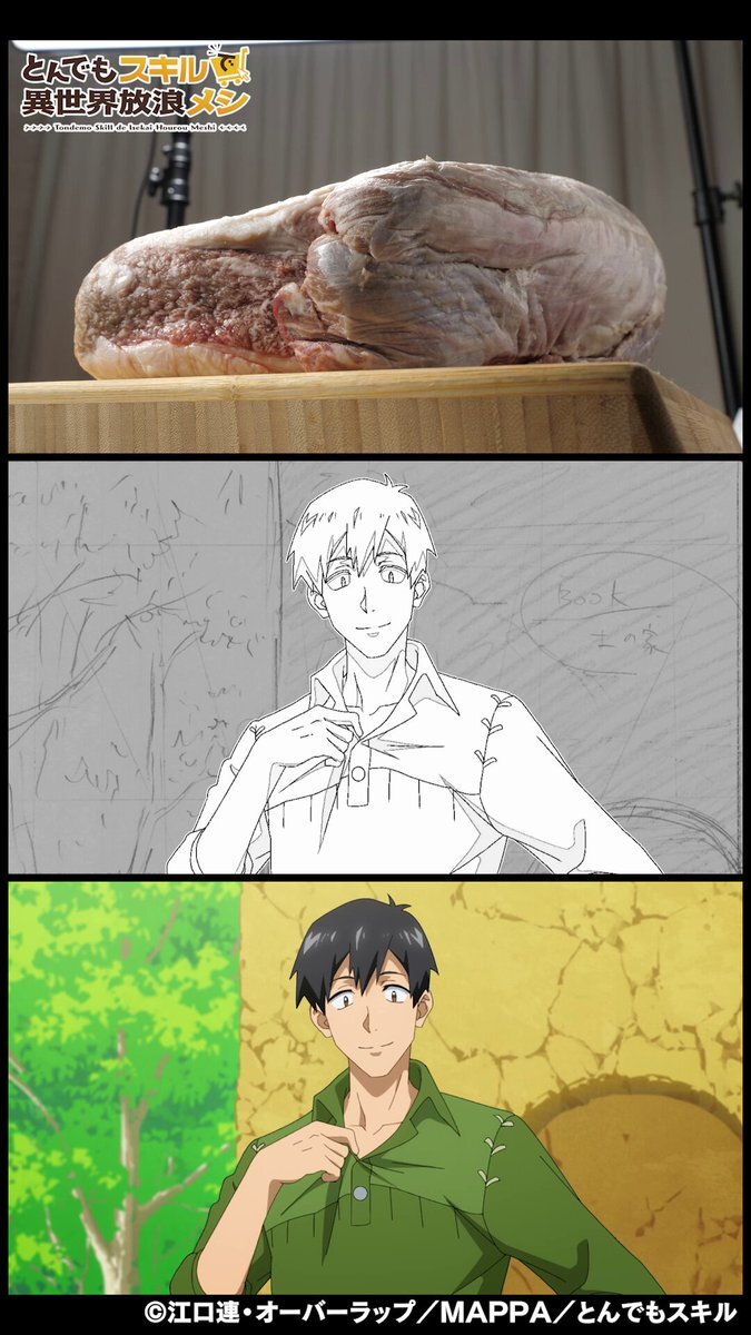 /  #とんでもスキルで異世界放浪メシ シーズン1   お料理シーン裏側🍳 \ シーズン1放送時に公開された、 実写からアニメになるまでの貴重な比較映像✏️ 第⓬話より「ワイバーン肉のビーフシチュー」のシーンです🍴 ぜひ何度もご覧ください! #MAPPA #とんでもスキル #tondemo_skill
