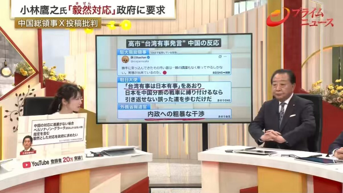 【そろそろ火消しを】薛剣・駐大阪中国総領事の𝕏でのポストで、自民党・小林鷹之政調会長の『ペルソナ・ノン・グラータ指定を含む毅然とした対応を政府に求める』発言に、立憲民主党・野田佳彦「気持ちはわかるがそろそろ火消しにあたって行かないと、PNG指定するとどんどんエスカレートしていく」