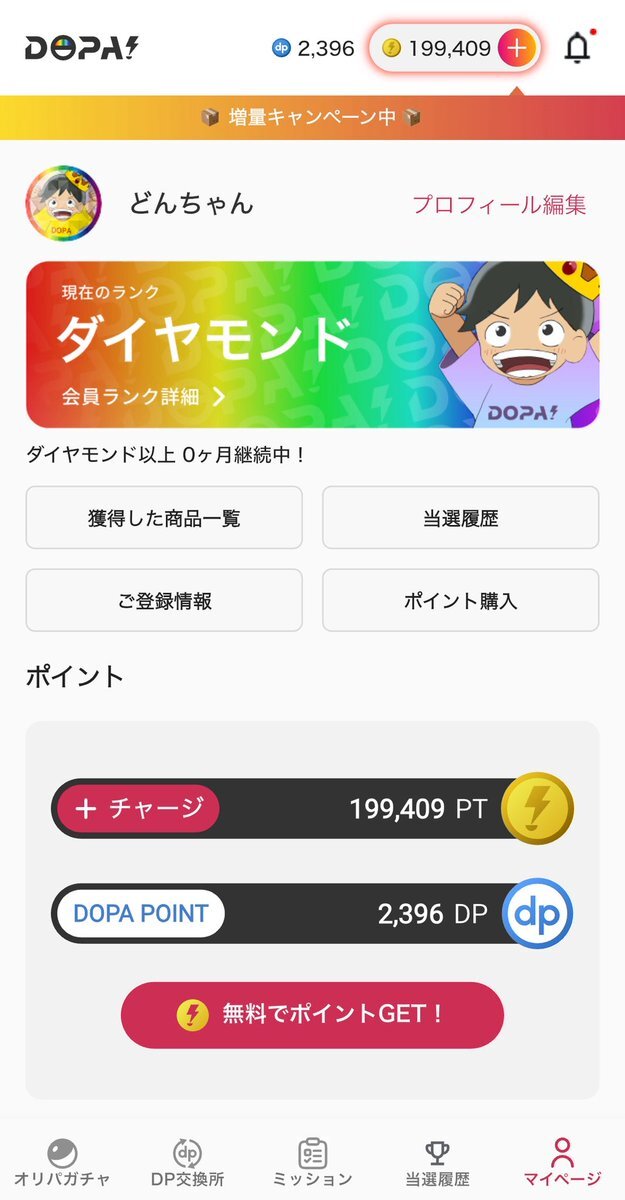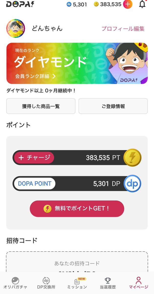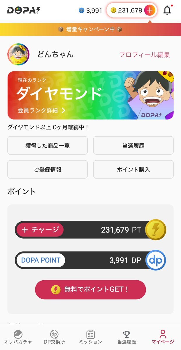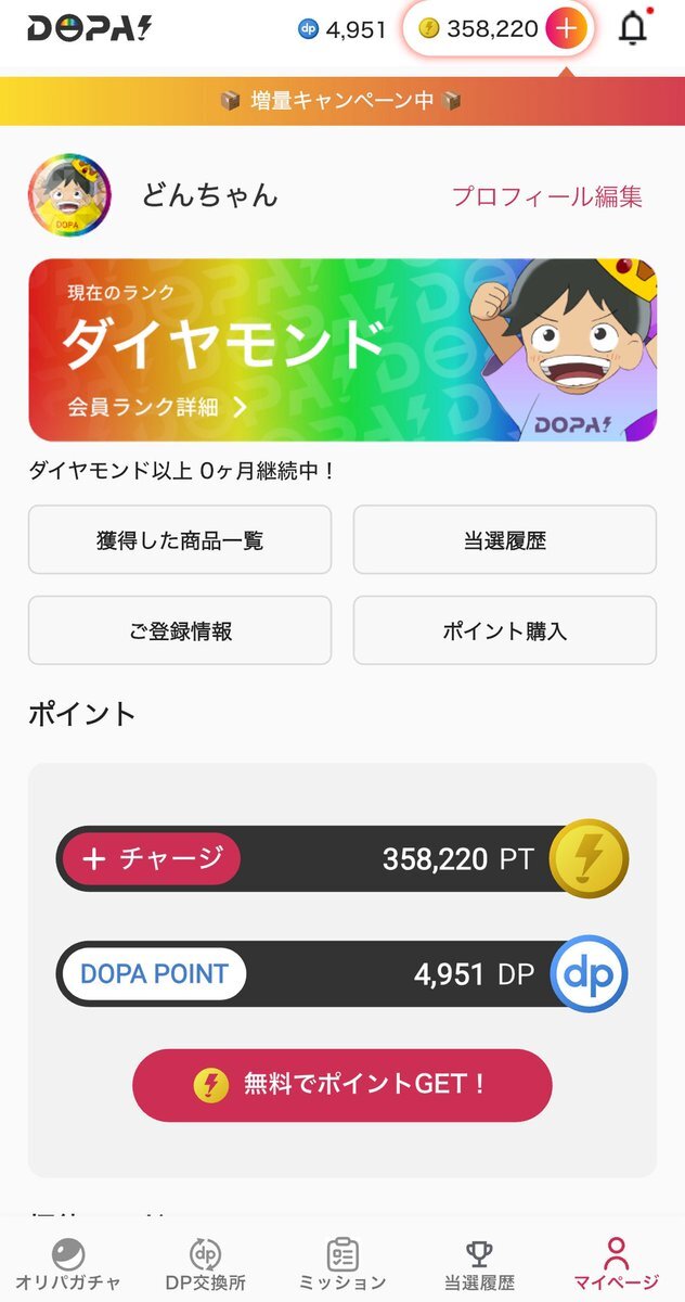DOPA!のダイヤモンドになって24日。 ようやく初めてのゲリラが来ました😅 少なすぎるよー🥲 でも今日も来てないって人もいるみたいで🥲 課金しないとアド確引けなかったり改悪がすごいけど頑張って貯めないとなー🤪 #どんちゃん罰符 pic.x.com/5KDn14a5nw