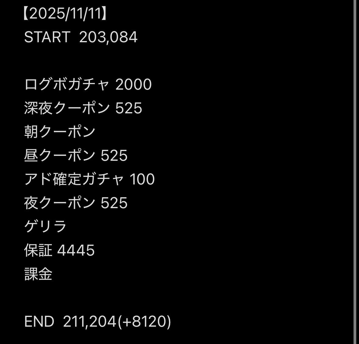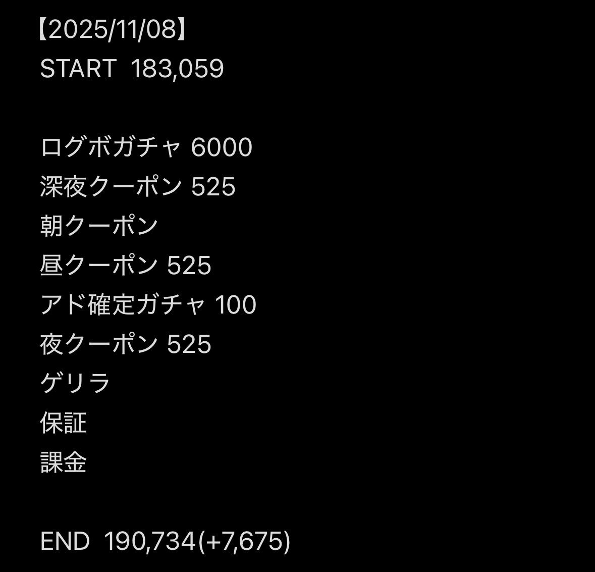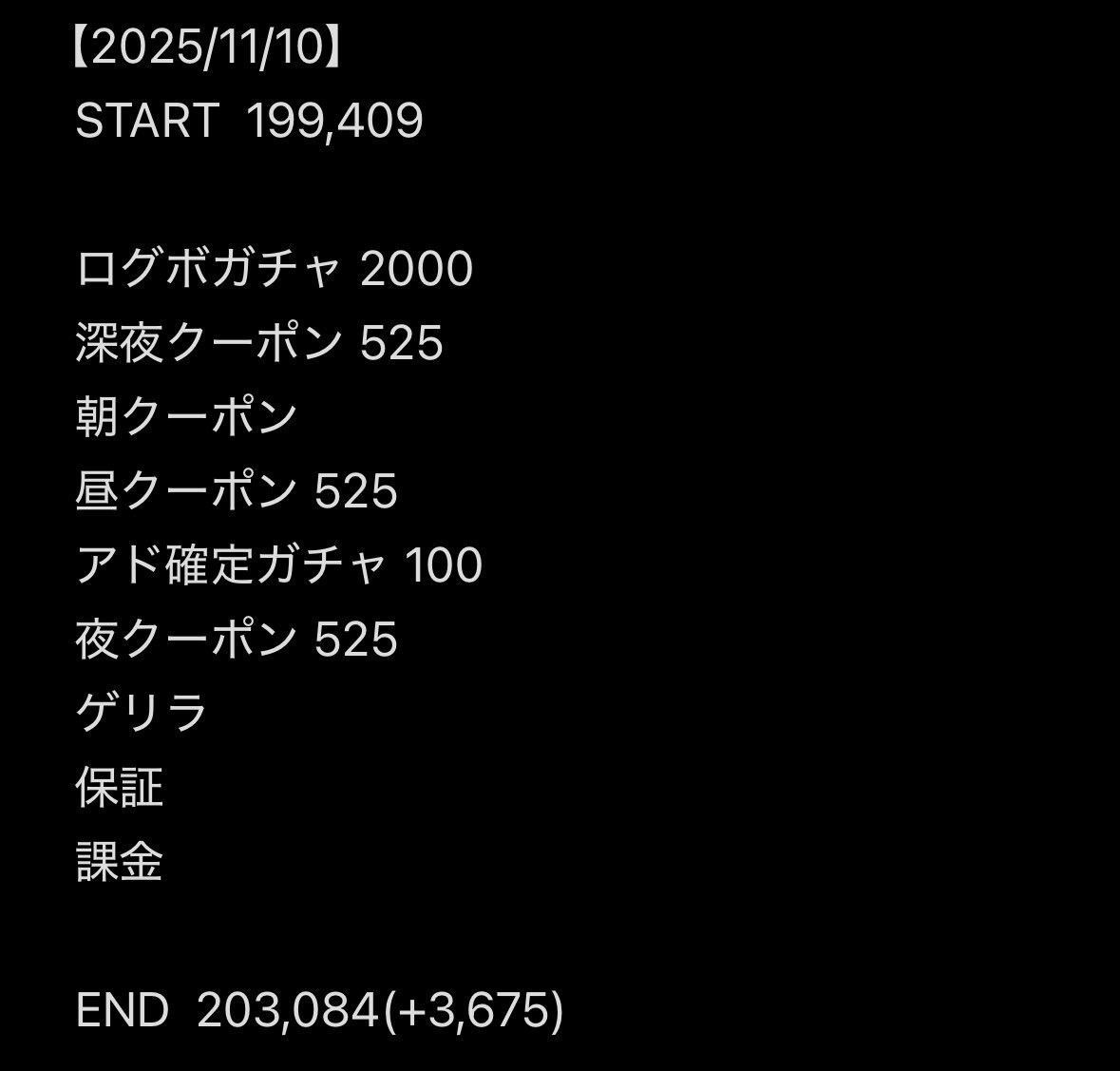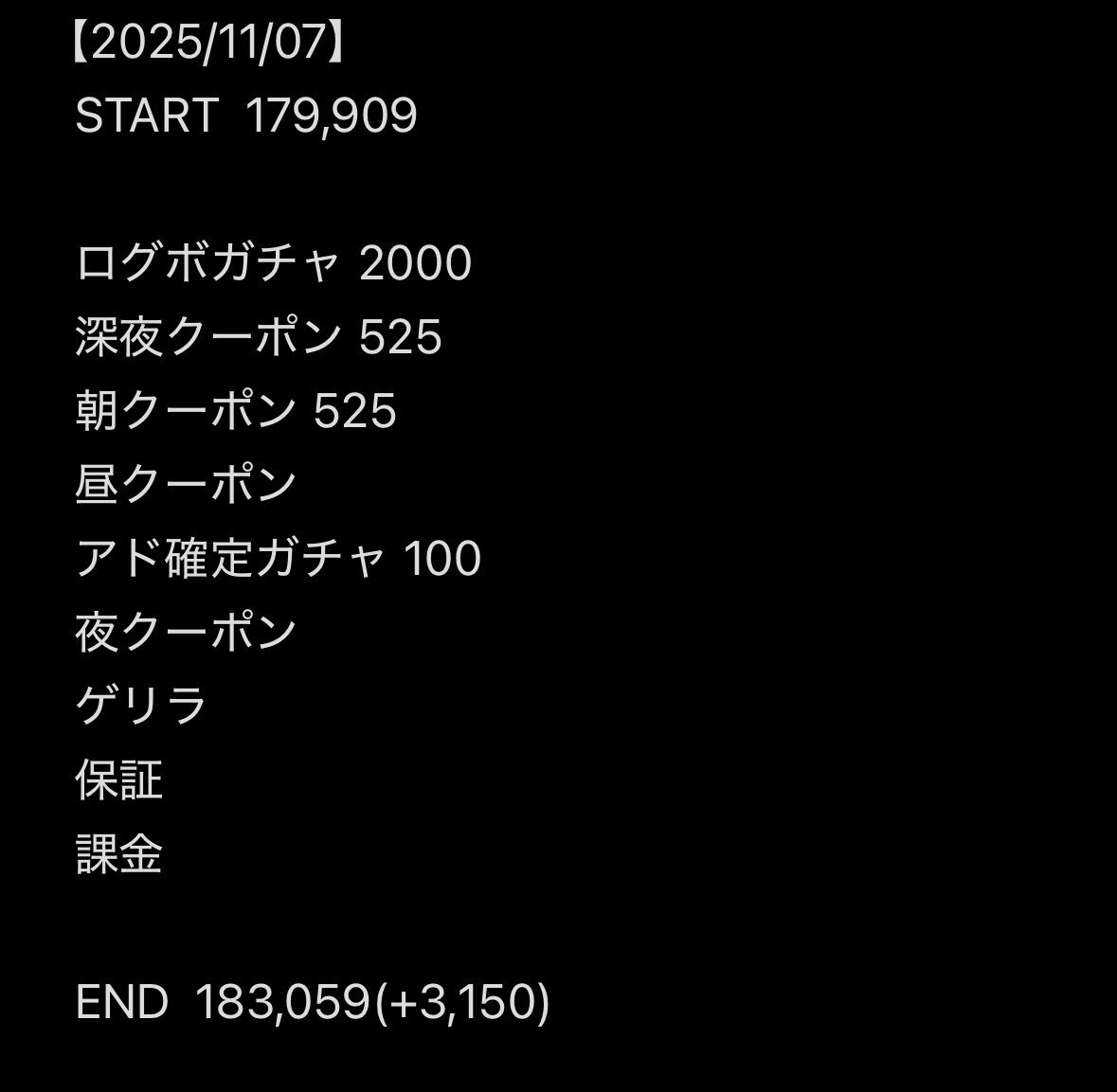 今日は思いがけず21時から保証ガチャが来て嬉しかった😙 既に回したくてウズウズ、、、← 一緒に貯めてみよーって方は是非コピーして使ってね🤩 【2025/11/02】 START ログボガチャ 深夜クーポン 朝クーポン 昼クーポン アド確定ガチャ 夜クーポン ゲリラ 保証 END #どんちゃん罰符 pic.x.com/d7BpPzrro9