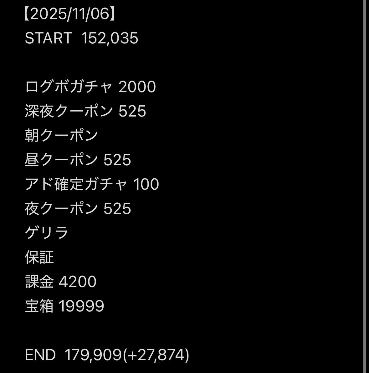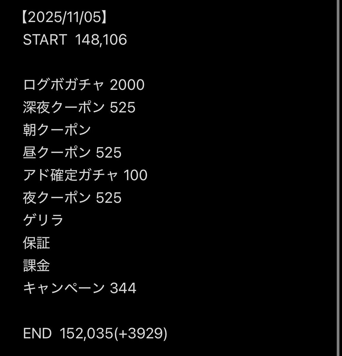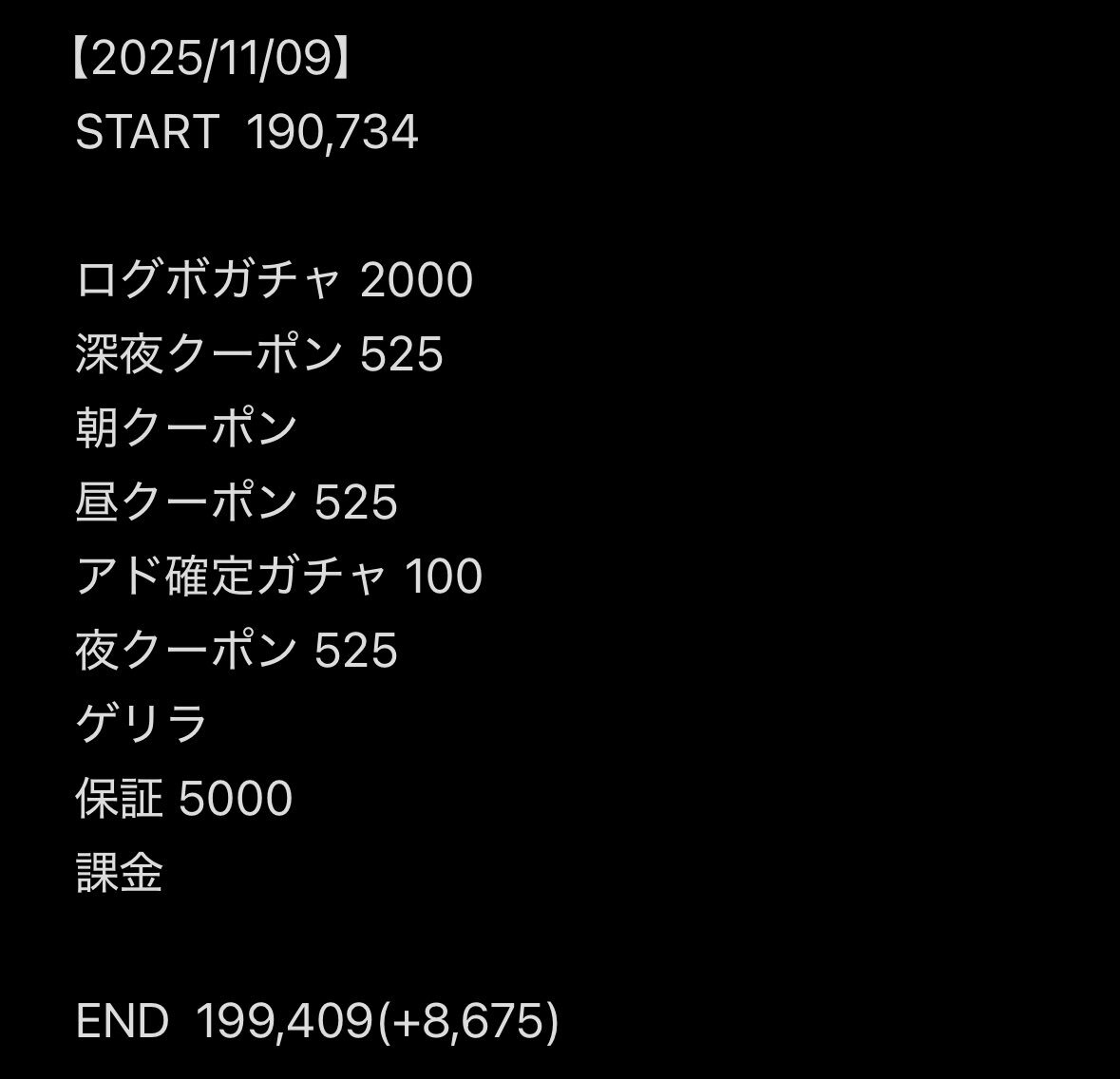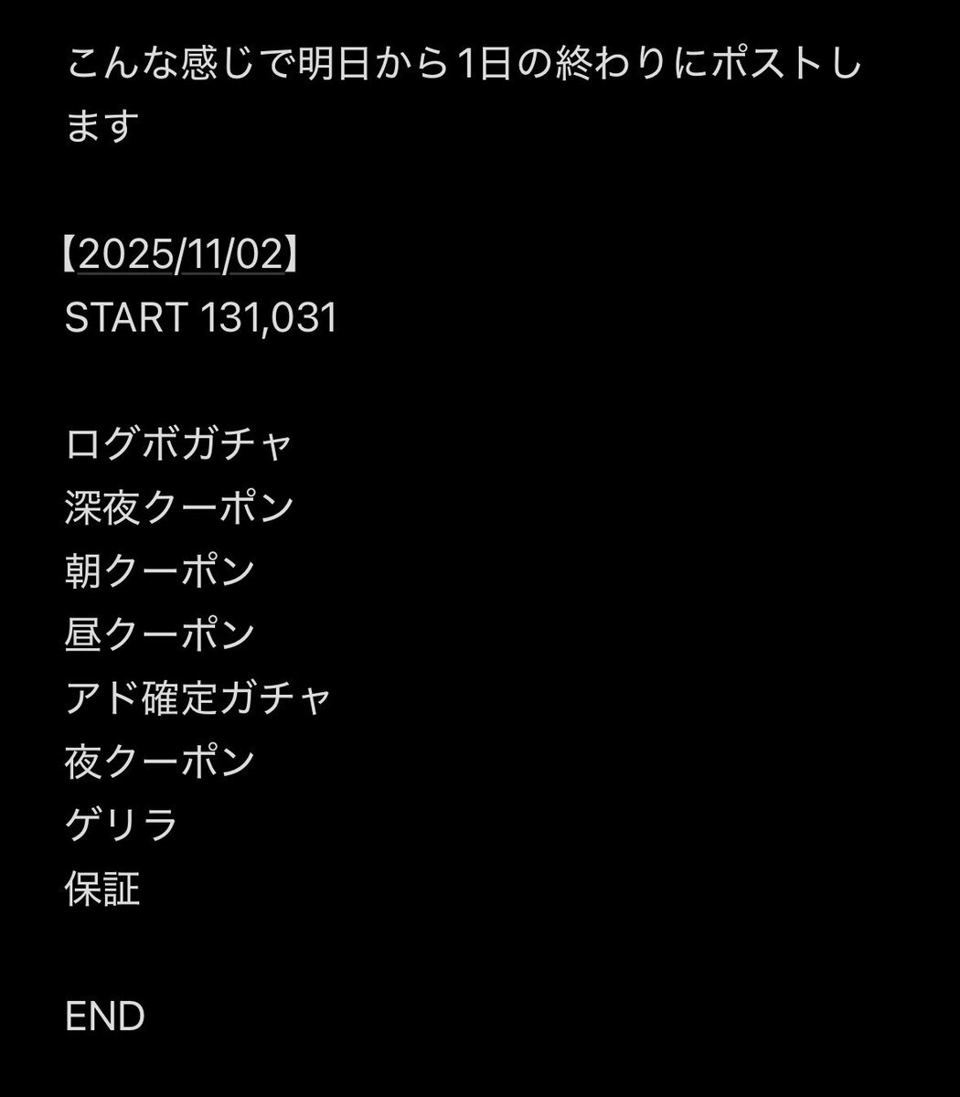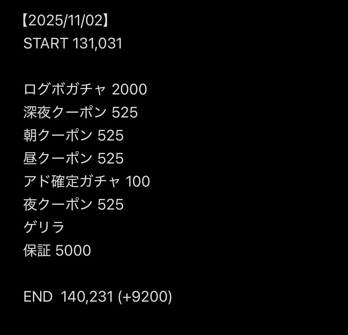 今日は思いがけず21時から保証ガチャが来て嬉しかった😙 既に回したくてウズウズ、、、← 一緒に貯めてみよーって方は是非コピーして使ってね🤩 【2025/11/02】 START ログボガチャ 深夜クーポン 朝クーポン 昼クーポン アド確定ガチャ 夜クーポン ゲリラ 保証 END #どんちゃん罰符 pic.x.com/d7BpPzrro9