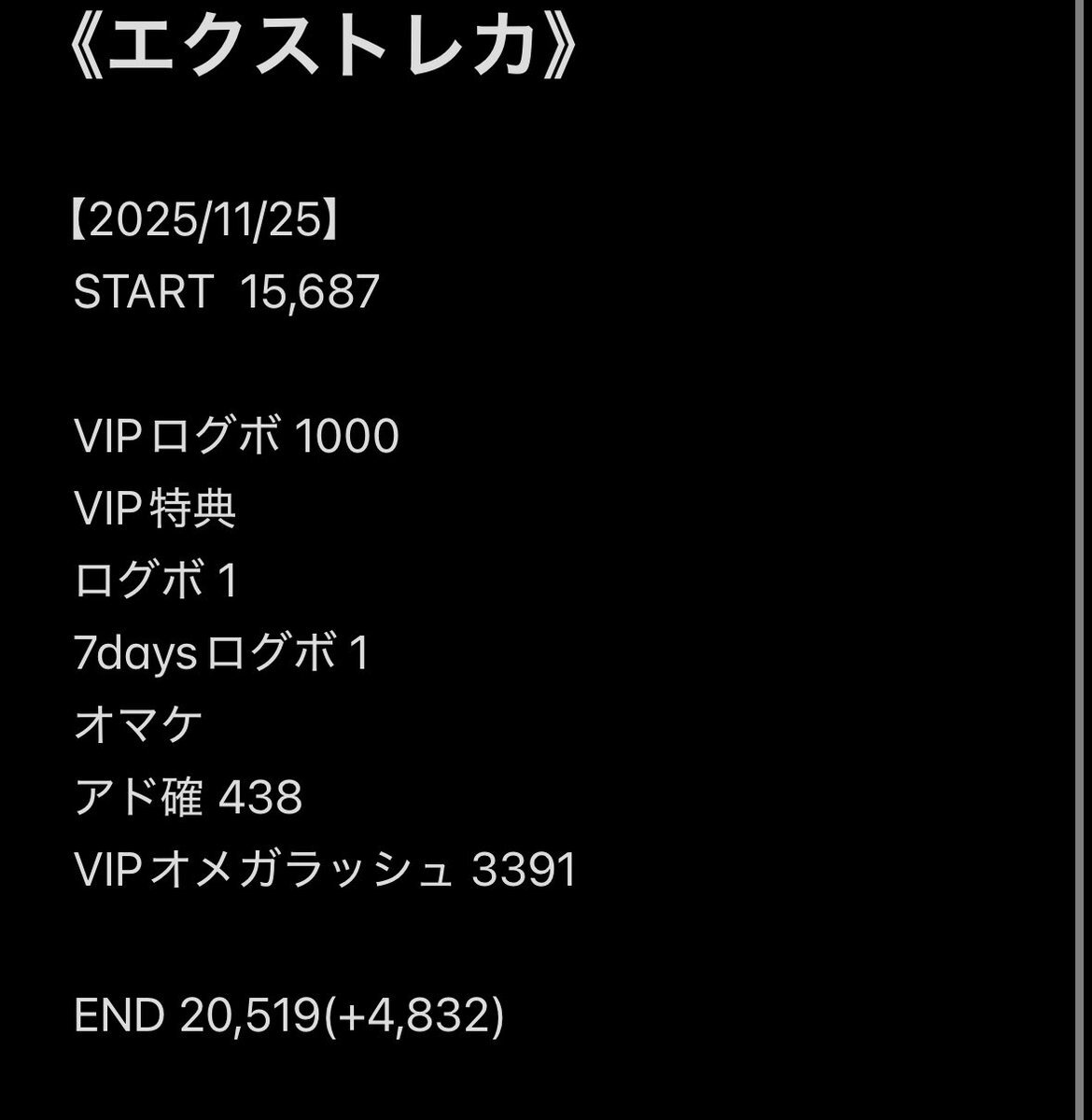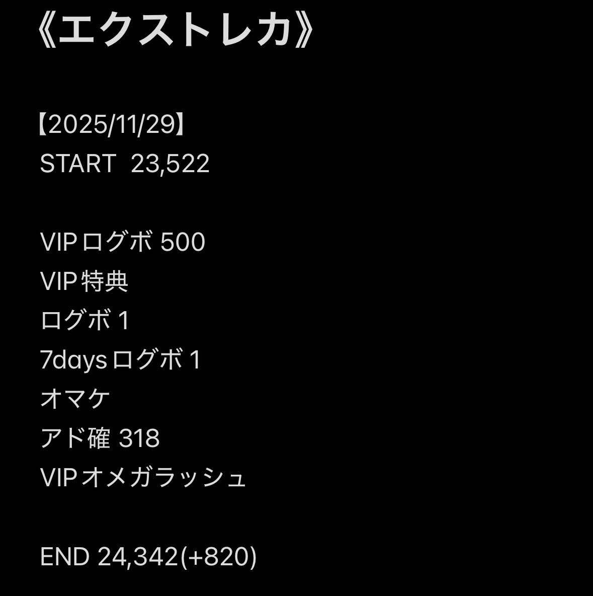 11月はこれで終了です! 念願のDOPAのダイヤモンド生活でしたが 従来のゲリラは1回のみ ログボの美味しいのは3回だけ 何のためにランク上げたのかという文句はどんちゃんの裏垢に書き綴ることにします😌 改悪が凄すぎて来月いっぱい持たない気はしていますが来月も頑張りましょう👶 #どんちゃん罰符 pic.x.com/FmQmm05yBT