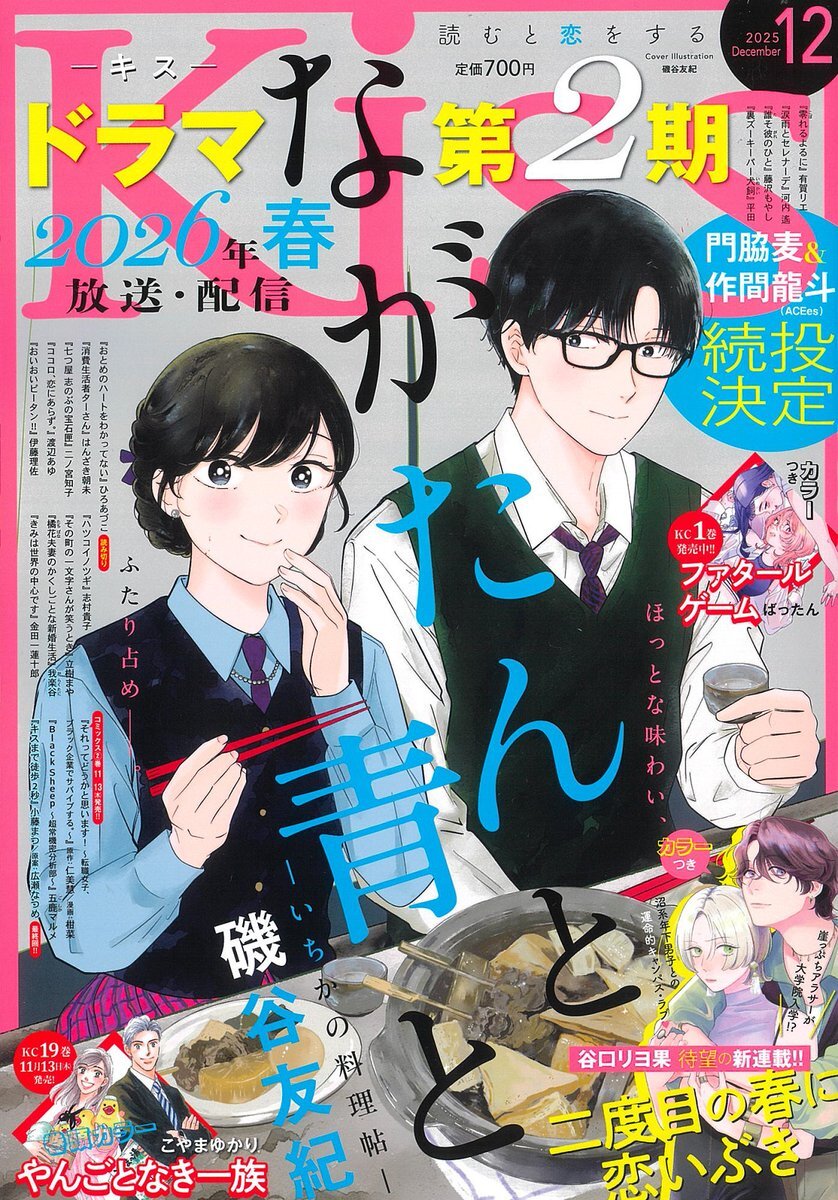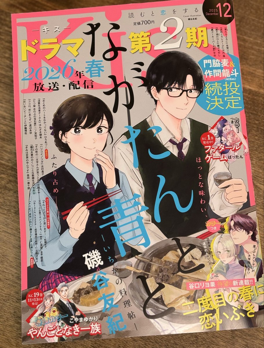 Kiss12月号が絶賛発売中💗 🥢表紙 #ながたんと青と 2026年春ドラマ第2期決定✨ 💎新連載 #谷口リヨ果『#二度目の春に恋いぶき』 崖っぷちアラサー、大学院入学🎓 ✦カラー付き #やんごとなき一族 健太の兄・明人が警察に…!? #ファタールゲーム 漫画家たちの争いが本格化!? kisscomic.com pic.x.com/JBLVlxpl7R