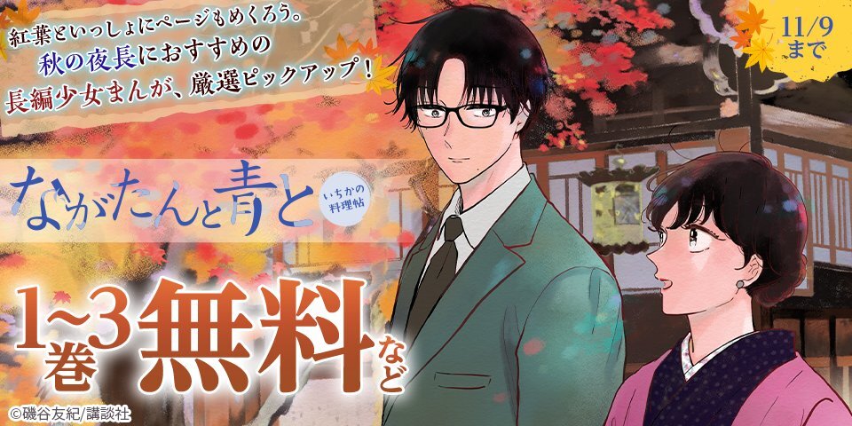 秋の夜長におすすめの長編少女まんがを集めました! 新旧人気作品を中心に厳選ピックアップ✨ 多数無料です😍 『#ながたんと青と -いちかの料理帖-』1∼3巻無料 『#東京タラレバ娘』1∼2巻無料 他にもセット割などおトクに人気作品が読める💫 ▽11/9まで dbook.docomo.ne.jp/list/2I3P/be10… pic.x.com/JOQ2kEOIZx