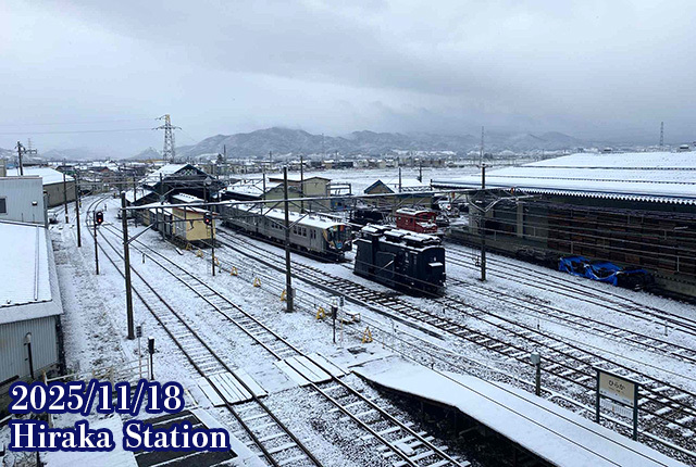 ほどよく雪が積もりました! ちょっとベチョベチョですが・・・ 弘南鉄道大鰐線・弘南鉄道弘南線は平常通り運行しております この後も降る予報で、朝8時現在、0.5℃です   2025年11月18日火曜日 弘南鉄道本社(弘南鉄道弘南線:平賀駅)の社窓からの景色をお伝え致します konantetsudo.jp/2025/11/18/vie…