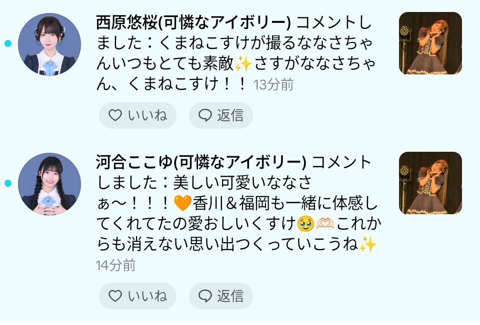 本人からコメント来なかったけど三人が完全にななさオタクなコメントくれて今度ななさの可愛さ一緒に語ろうって思いましたまる みんなありがとうにこにこになりました🥰 #ななさみてさ #リオフミ #ゆらら部 #天然ここ湯愛好会 pic.x.com/WdJ80M5e6o