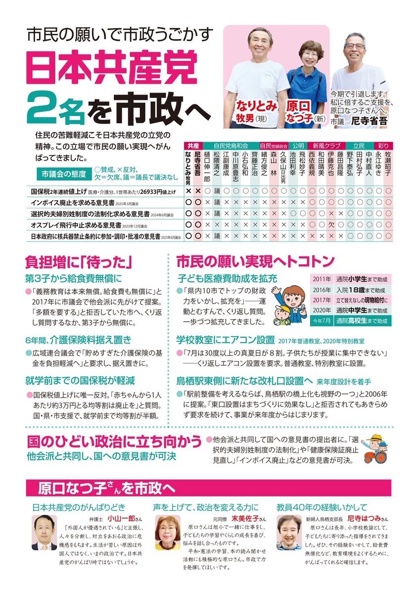 鳥栖市会議員選挙は11月9日告示、16日投票。#日本共産党 は現有2議席確保を目指してたたかいます。新人の #原口なつ子 さん。尼寺省吾市議からバトンタッチ。教師40年のキャリアを生かしてがんばります。5期目に挑戦 #なりとみ牧男 pic.x.com/3qBp0AZzix
