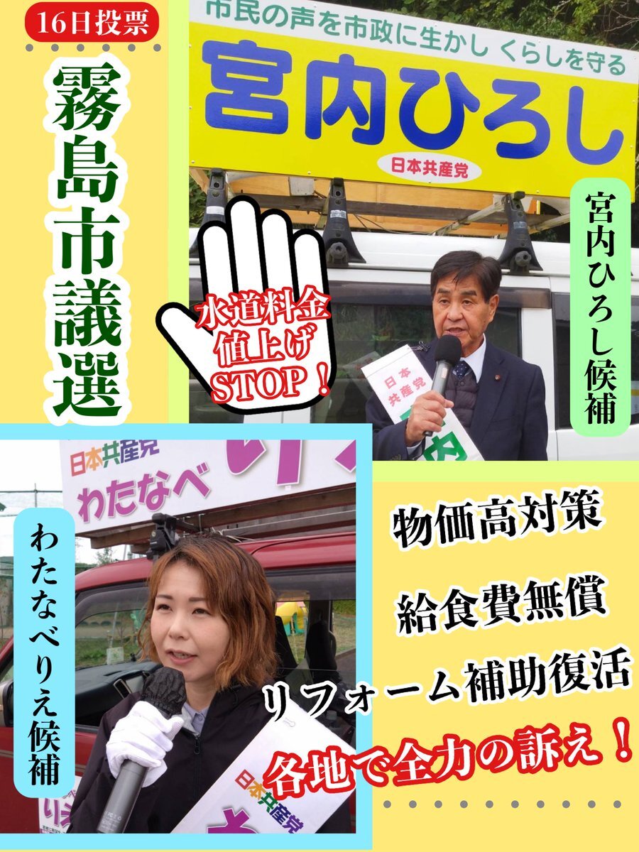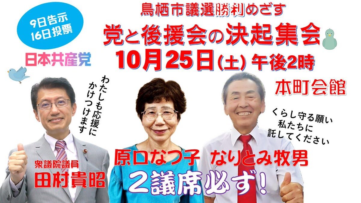 鳥栖市議会議員選挙が11月9日告示・16日投票でたたかわれます🗳️ 新人の #原口なつ子 さんと5期目をめざす #なりとみ牧男 さん。 2名の鳥栖市議団を押し上げてください❗️ 25日(土) 午後2時から 鳥栖市議選勝利めざす 党と後援会の決起集会🌈 田村貴昭衆院議員もかけつけます💨 山本愛も全力応援💪 pic.x.com/gzyzQH8Xnq