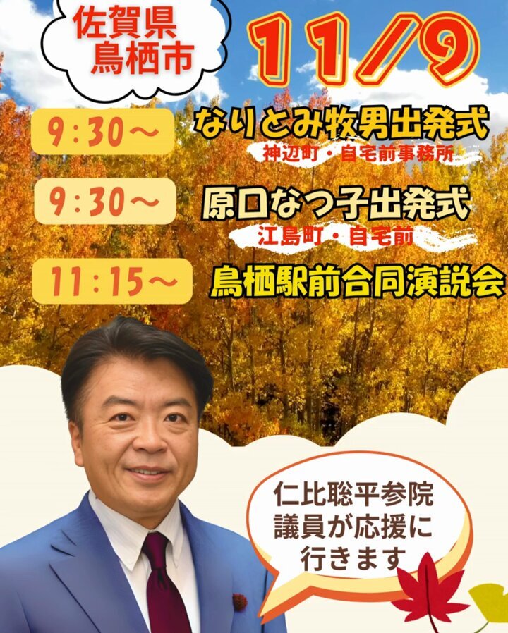 11/9から11/16 鳥栖市民の皆様方、佐賀県民の皆様方 鳥栖市議選では #なりとみ牧男 #原口奈津子 へのご支援をよろしくお願い致します。 11/15 23時59分まで、SNS(X等)で支援できます。 11/16 投票 pic.x.com/cuzwfrpi9l