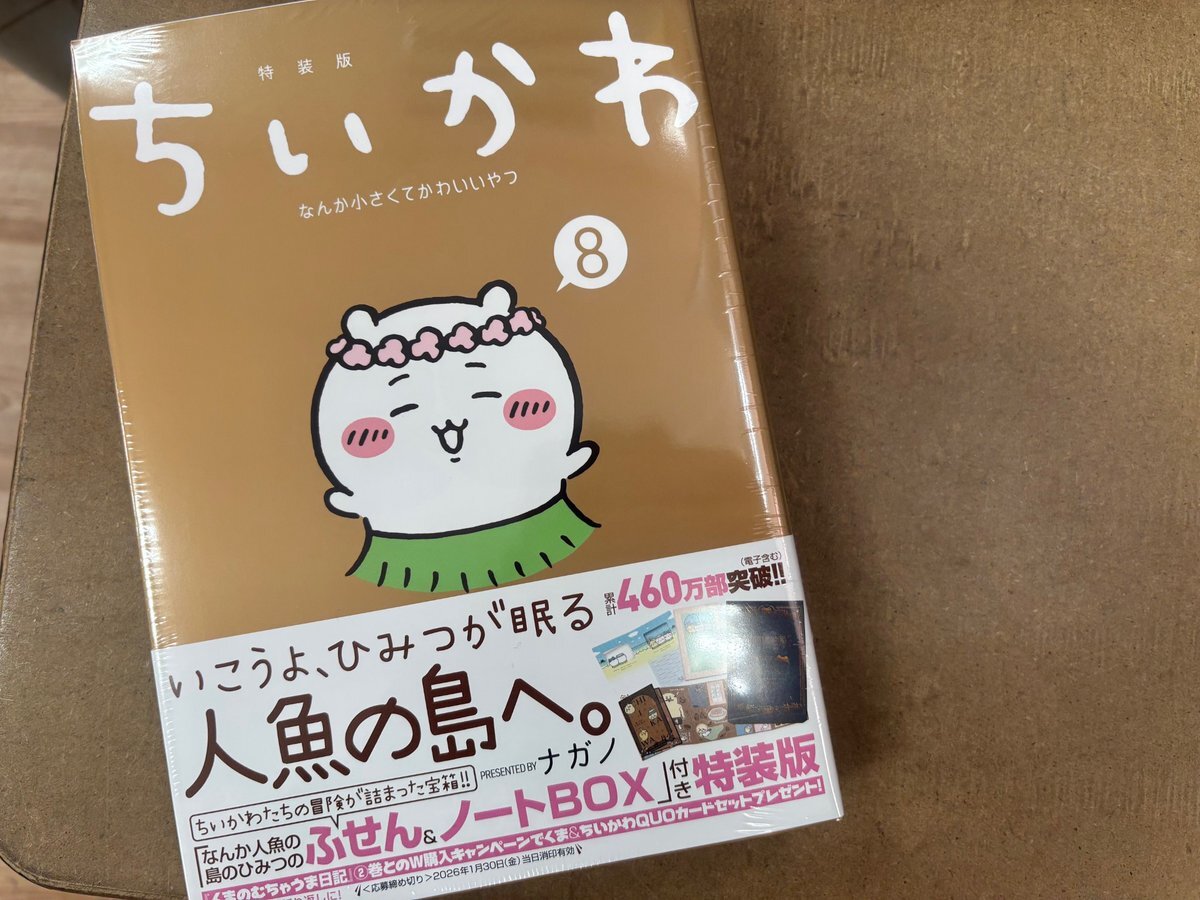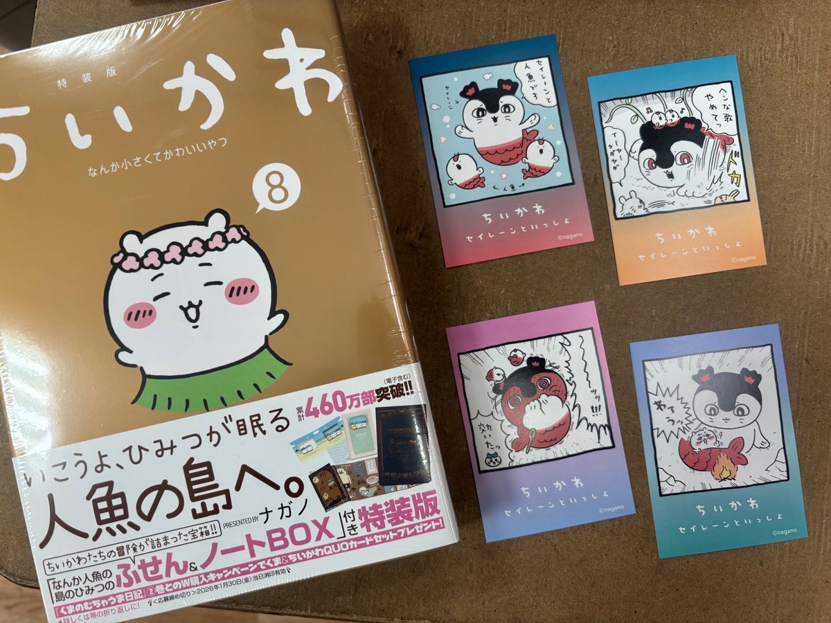 💛BOOK情報💛 本日発売✨ #ちいかわ なんか小さくてかわいいやつ8巻 #なんか人魚の島のひみつのふせん&ノートBOX付き特装版 #ナガノ #講談社 #TSUTAYAオリジナル 特典ついてます❤️ #コミック と一緒についてますので そのままお買い求めいただけます❤️❤️ 通常版は明日入荷です❤️ pic.x.com/VaVaEIpTC0