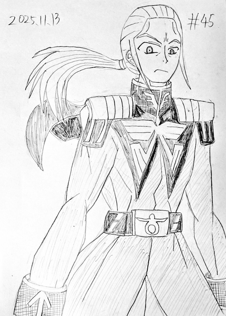 #なんでもいいから1日1枚描く 第45回 『機動戦士ガンダム0083』よりアナベル・ガトーです。 デラーズ紛争終結の日なのでガトーにしました。 憎悪や怒りを込めた眼にしたかったのですが、俺が描くとどうしてもマンガっぽい絵になるなぁ···劇画調が苦手すぎる pic.x.com/qF4a6VLFSP