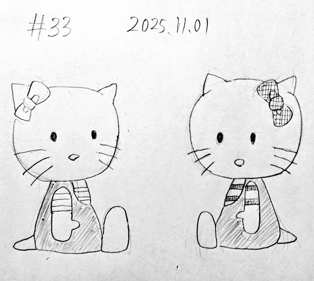 #なんでもいいから1日1枚描く #ハローキティ誕生祭2025 第33回はハローキティ&ハローミミィです。 どシンプルなデザインなのでバランスを取るのに苦労しました。 pic.x.com/qrfYPzIg0Z