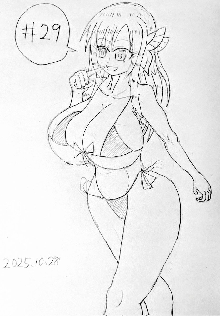 #なんでもいいから1日1枚描く 第29回 『僕は友達が少ない』より柏崎星奈。 ビキニなのは服を描くのが面倒だったからではない。 どっしりしたボディは描いてて楽しいです。 pic.x.com/Fj0Ij6jhmX