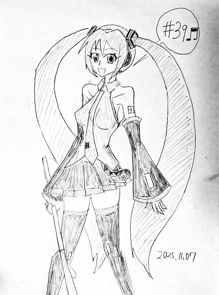 #なんでもいいから1日1枚描く 第39回はVOCALOIDより初音ミクです。 過去に何度も描いてるキャラだけど結局棒立ちに···もう少しポーズを工夫したほうが良かった。それ以外はよく描けたと思います。 pic.x.com/t0LRF6ihEg