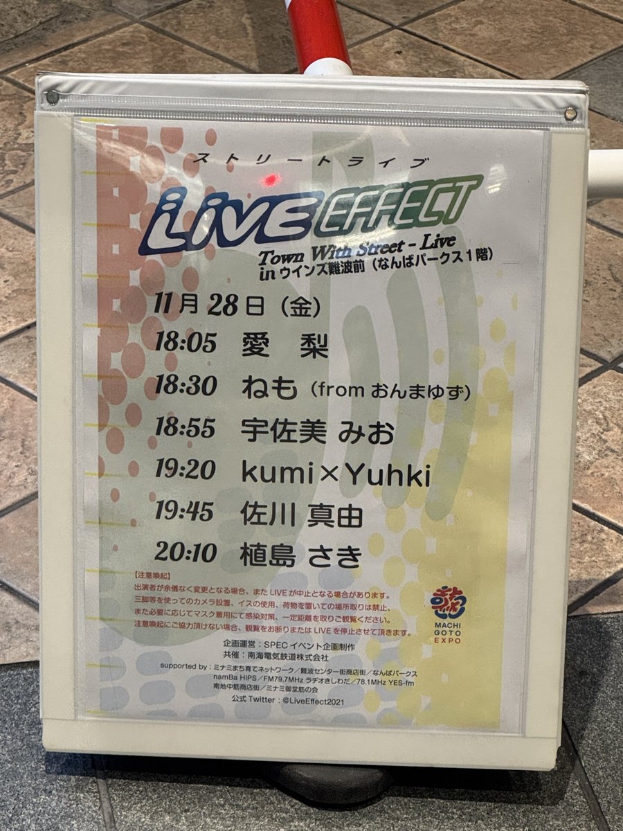 25.11.28 #なんばパークス #LiVEEFFECT ・愛梨 ・ねも ・宇佐美みお ・Kumi×Yuhki(初) #佐川真由(33回目) ・植島さき 前に佐川さんに教えてもらってたけど、今回は出番遅めで、なんとか仕事帰りに初めて行けました♫ いいライブやったし、アクセスも悪くないし、また来たいなと思いました😊 ※続く…