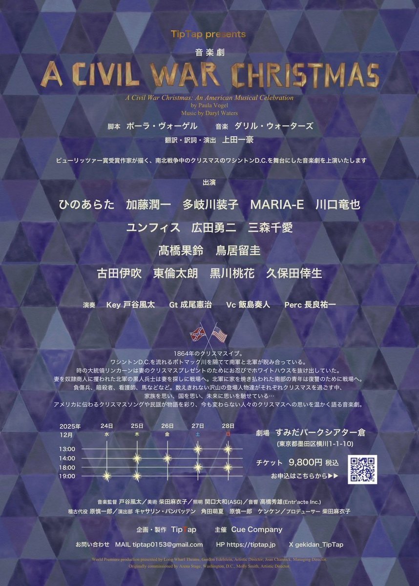 【ご報告】 TipTap presents 音楽劇「A Civil War Christmas」 出演いたします。🎄☃️ 6年越しにまたこの作品に参加できることを嬉しく思います。大好きなTipTapさん、素敵なキャストの皆様とご一緒できることに感謝し、精一杯務めます! 髙橋果鈴チケット先行が始まりました!FC会員の方には特典も! x.com/dolcestarnews/…