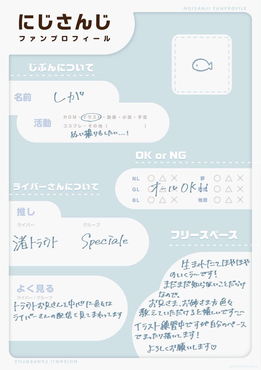 お友達募集𓂃 𓈒𓏸 ♡orRPで気になった方お迎えにあがります🕊️ リットリンク¦ lit.link/siiiga__ #にじさんじ好きな人と繋がりたい #にじさんじ自己紹介カード