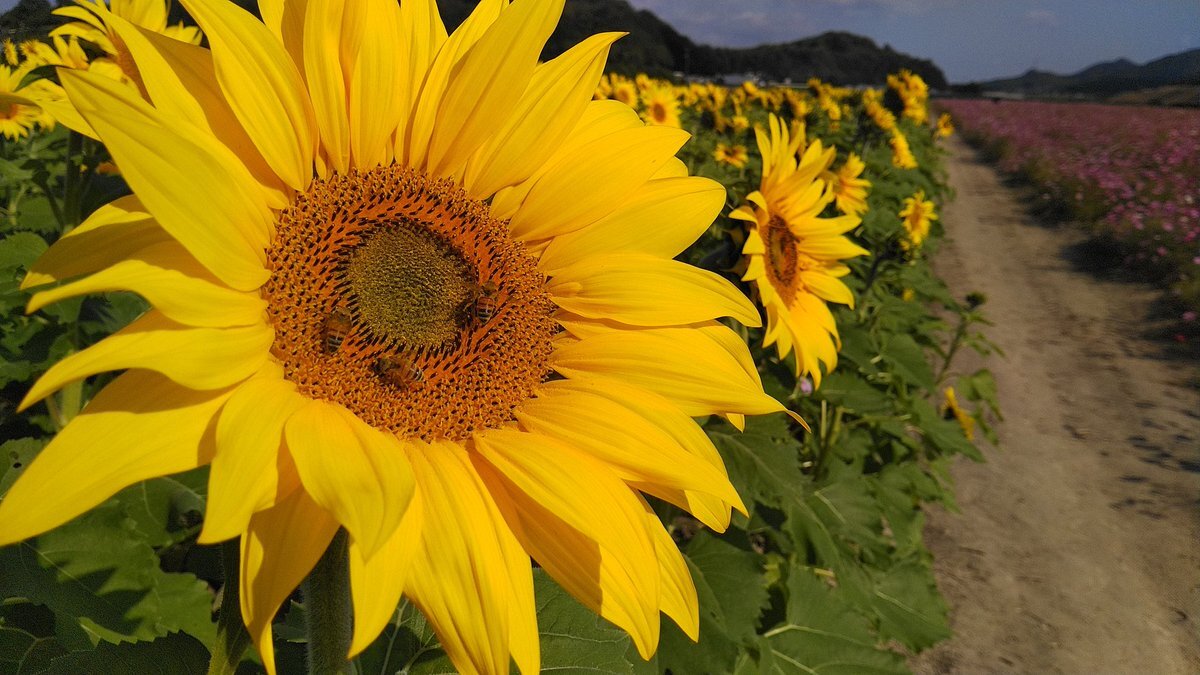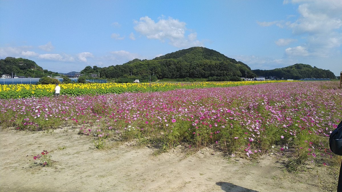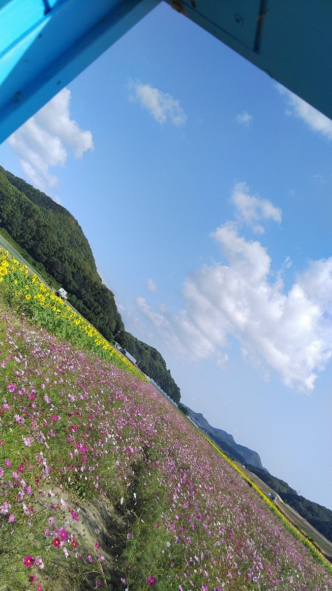 ひまわりとコスモスのコラボ✨ 笠岡ベイファームでパチリ❗ にふぇーでーびる笠岡からも近いよ~ #岡山県笠岡市 #道の駅 #にふぇーでーびる笠岡 #沖縄そば #沖縄料理 #子連れでもゆっくり食べれる #子供も食べれる #キッズスペースもあります #お一人様も気楽にどうぞ #かわいいバイク #老若男女 pic.x.com/YZPOKoM9ZP