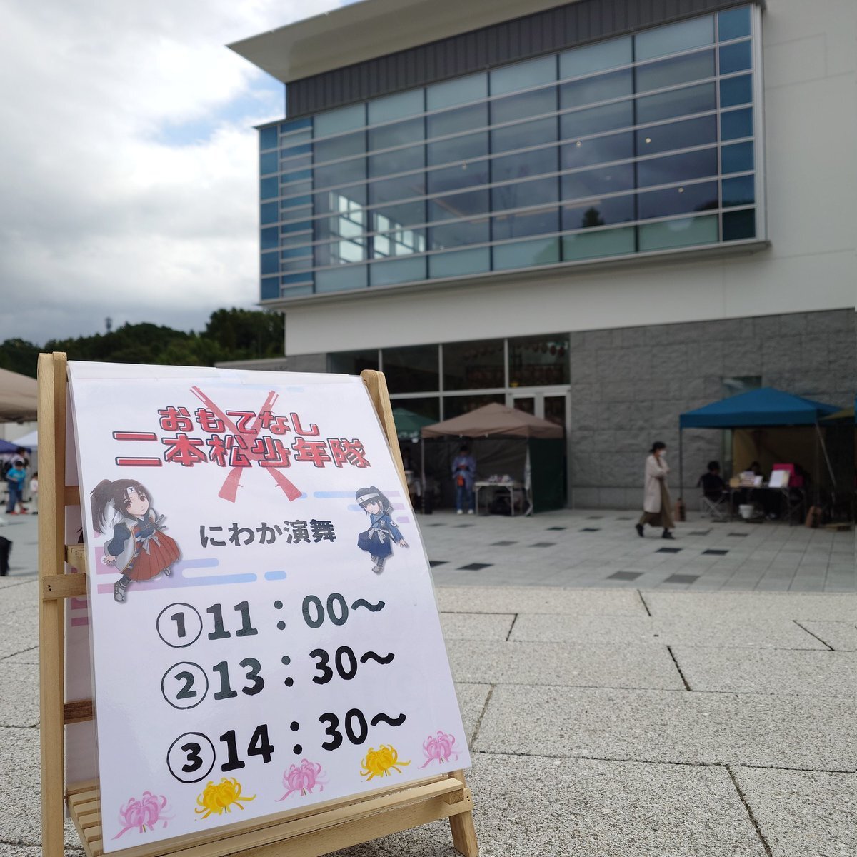 本日のお天気は曇り! 1回目の #にわか演舞 は終了にございます! 次回は13:30✨ #二本松の菊人形 と #物産展 お楽しみくださいませ! #おもてなし二本松少年隊 #にほんまつ城報館 pic.x.com/Dc4nQ6HMPD