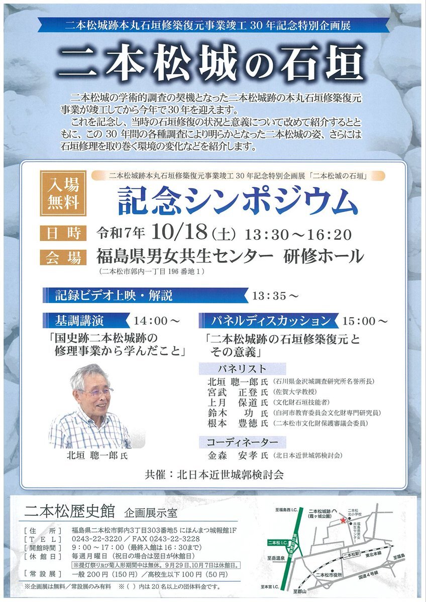 #二本松歴史館企画展 関連企画「二本松城の石垣」シンポジウム、13時30分より始まります🏯どうぞお気軽にお越しください😊 会場は #にほんまつ城報館 斜向かいの #福島県男女共生センター です! pic.x.com/9bEpZQbr3Q