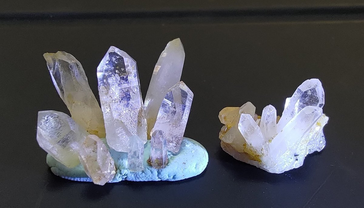 10,11月に拾えた水晶 大きいので2cmくらい 段々大きくなって来ました(o^^o) (2枚目右側だけホントのクラスターで、後のは練り消しで立たせてます) #にゃんちき写真展 #俺式お宝探し pic.x.com/T7EiClvtpf