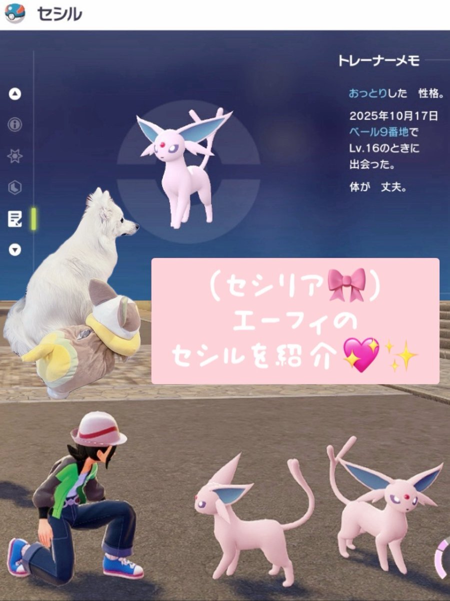 旅パーティーで特に気に入っているエーフィのセシルです😄💞 イーブイの頃にかなり苦労してゲットした子です😅 セシルはセシリアの男性名です🎶 ランクCまでストーリーも進みました😆 #ポケモン好きな人と繋がりたい #ポケぬいトレーナーさんと繋がりたい #ぬいぐるみ好きな人と繋がりたい #ポケモンZA pic.x.com/x9zV6TAtYv