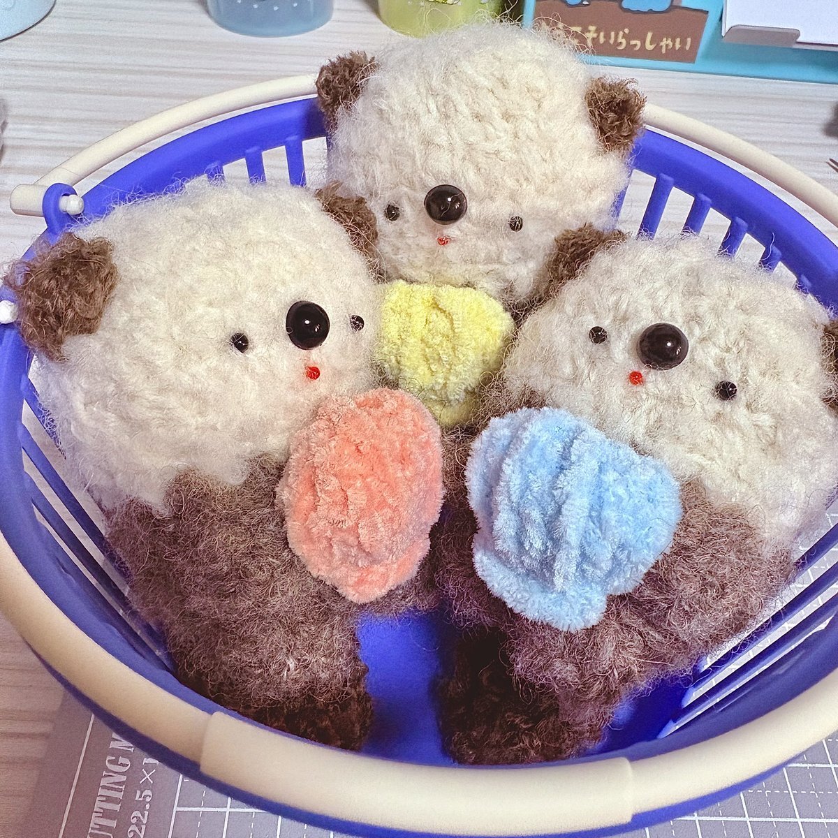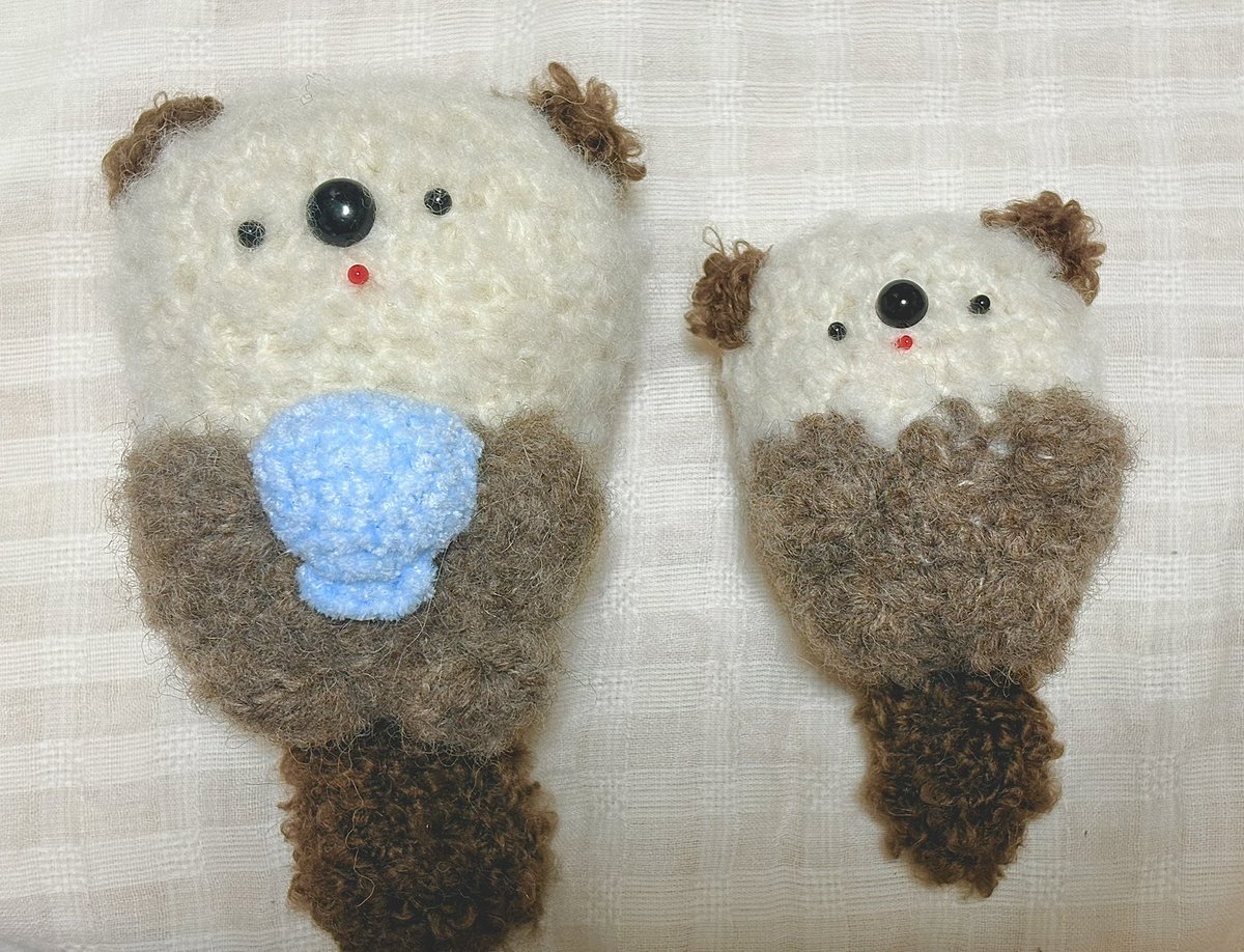 らっこさん 旧バージョン(左) #ぬいぬい展 様に連れていく予定の新バージョン(右) サイズを小さく(お値段もその分お安く)しました!手のひらにすっぽり収まるサイズです🦦 手に持たせる貝はあった方がいいか無い方が可愛いか悩み中です…🤔 pic.x.com/NRq41i1nCK