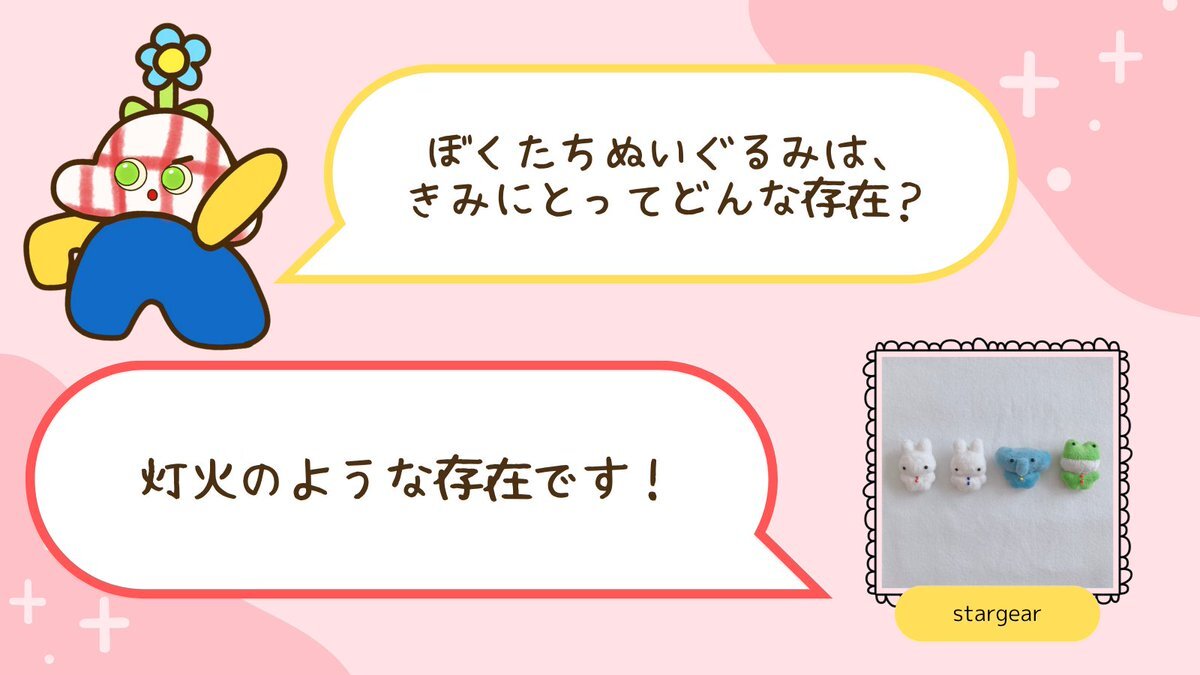 【ぬいぬい展一問一答企画】 あなたの言葉で「ようこそ」を届けてください🌷 stargear(@stargear0101 ) #ぬいぬい展 #ぬいぬい展一問一答 pic.x.com/S4PkXEwbOL