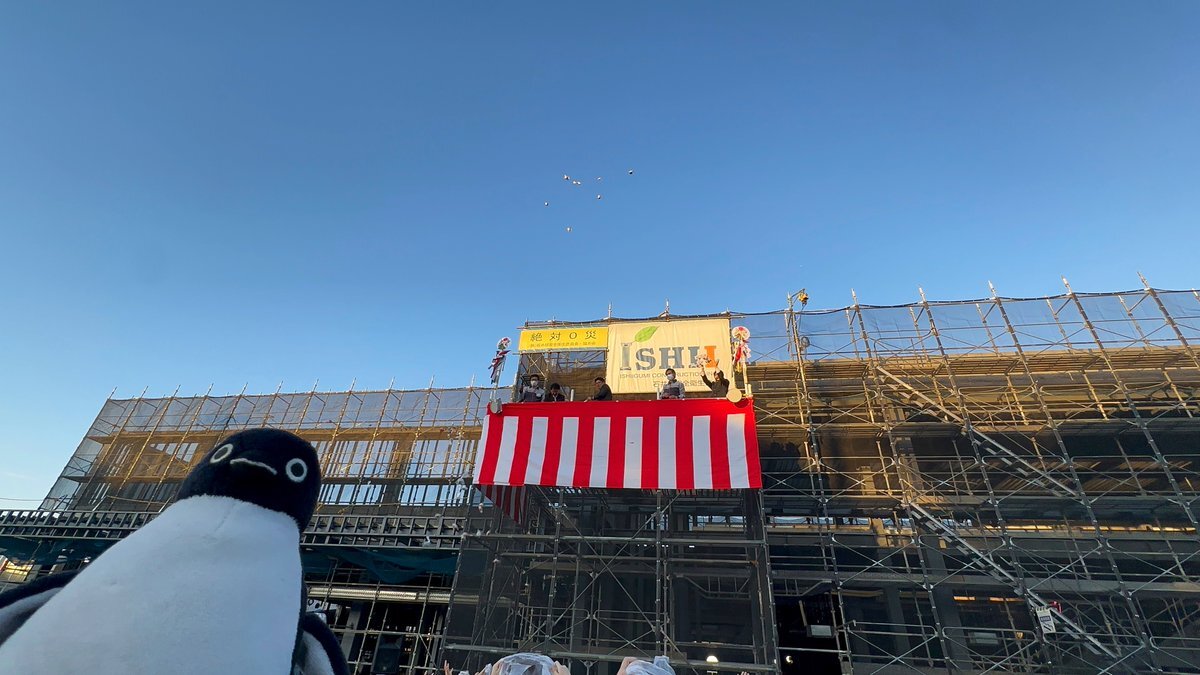 フードストアあおき沼津西店の上棟式の餅まきに参加したペンギン(・∀・) #Suicaペンギン #ぬい活 #ぬい撮り写真部 #ぬい撮り #penguin #推しぬい #沼津 #Numazu pic.x.com/Y66VN8njH0