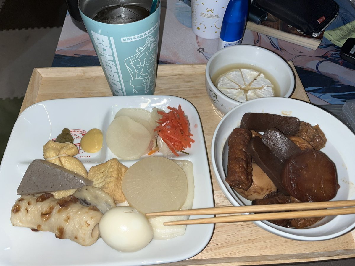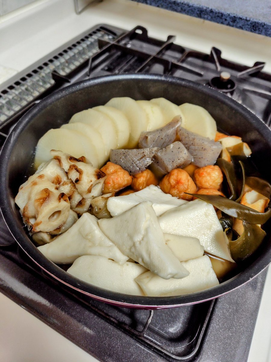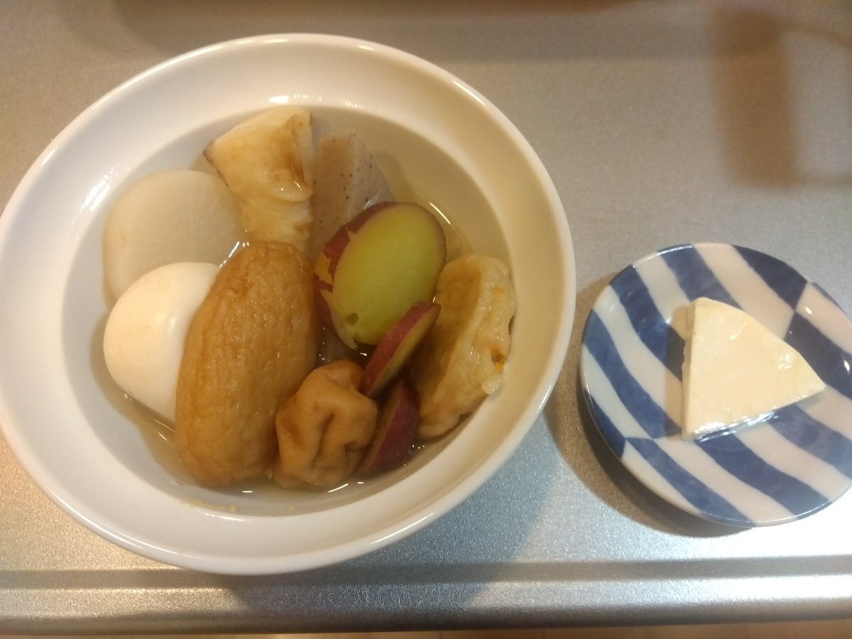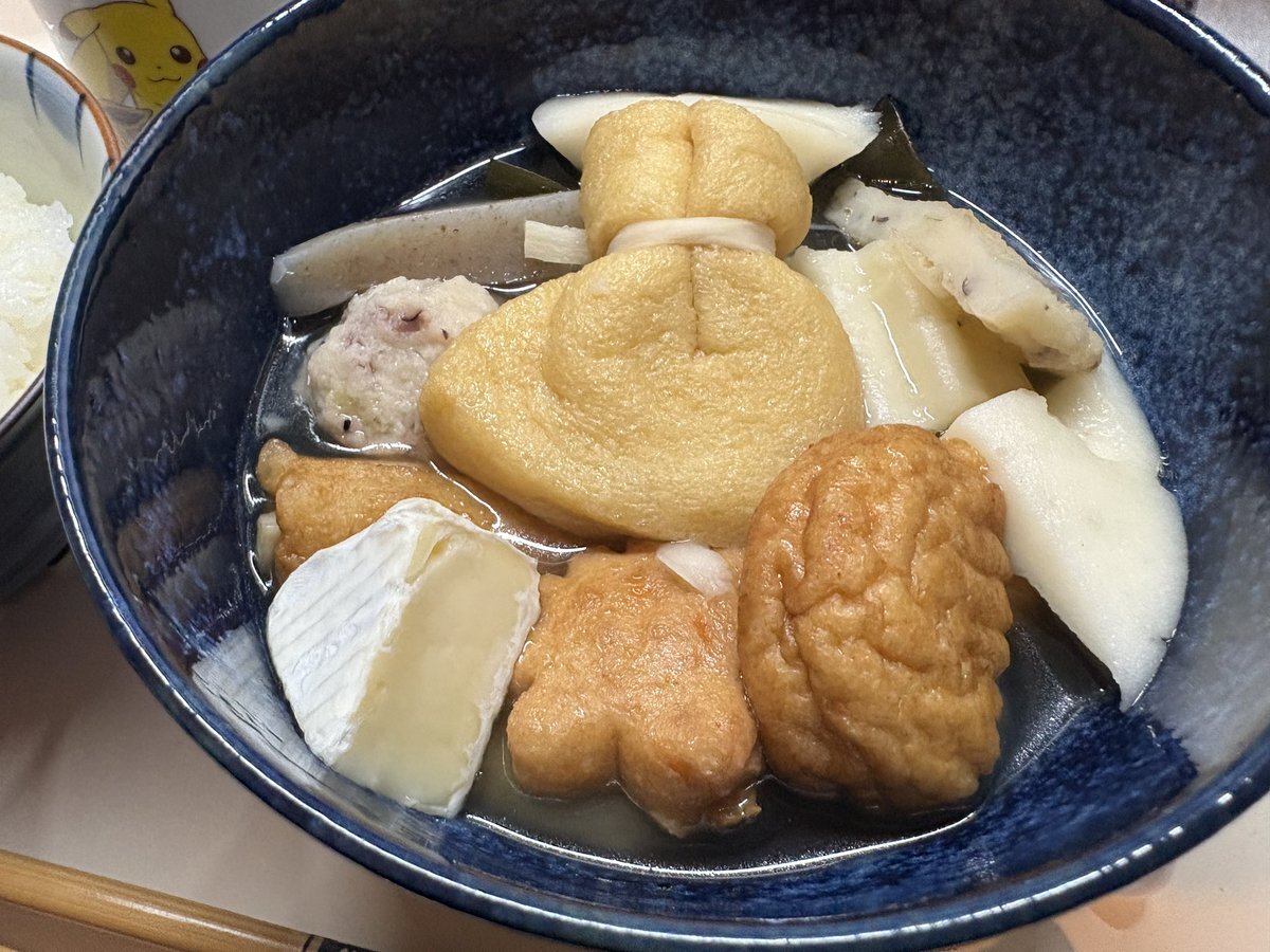 #えりなま #ねき今日これ食べたよ見て 出先なのでこの前作った阿部蒲鉾店のおでんだねセットで作ったおでん 紀文のセットは今度買ってみます おでんにカマンベールチーズ、さつまいも…メモメモ… pic.x.com/9I8RN653XI