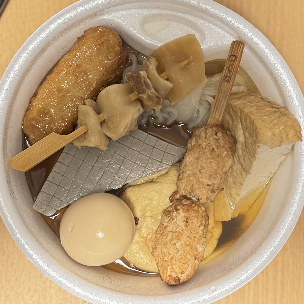 今日はファミマのおでんだから、最近食べた静岡おでん! サービスで魚粉?めっちゃかけられたけど美味しかった✨ 卵は付きで入ってたから剥いて食べるのかは謎だった… #えりなま #ねき今日これ食べたよ見て pic.x.com/Xxd2fRyDJn