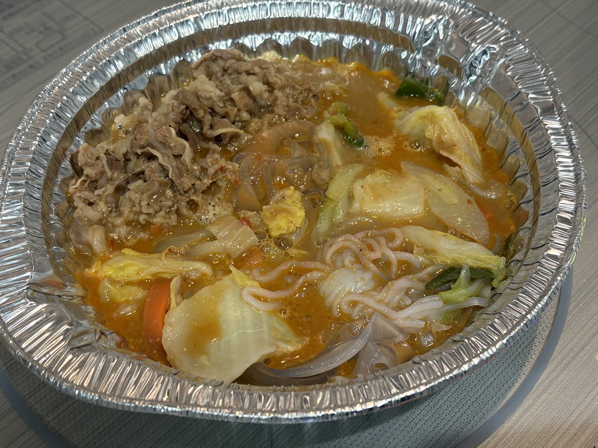 すき家の牛・胡麻麻辣湯鍋。 テイクアウトだとアルミ鍋に入って提供。 汁入れて2分煮込んであっという間にヒーヒー! ローストビーフ丼も一緒に食べたがすき家やるなあ #ねき今日これ食べたよ見て pic.x.com/AIRQg9oc7p