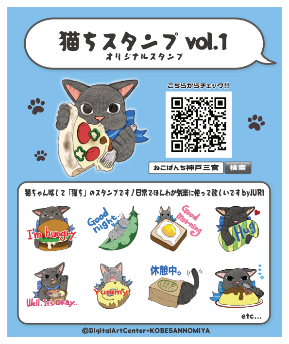 新作LINEスタンプ発売のお知らせです🎉 利用者のJURIさんに描き下ろしいただいた『猫ちスタンプ vol.1』となります🐈 猫ちゃん略して「猫ち」のスタンプです!日常でほんわか気楽に使って欲しいです✨ #ねこぱんち神戸三宮 [猫ちスタンプ vol.1] line.me/S/sticker/3141… pic.x.com/a1lTyT3Nf4