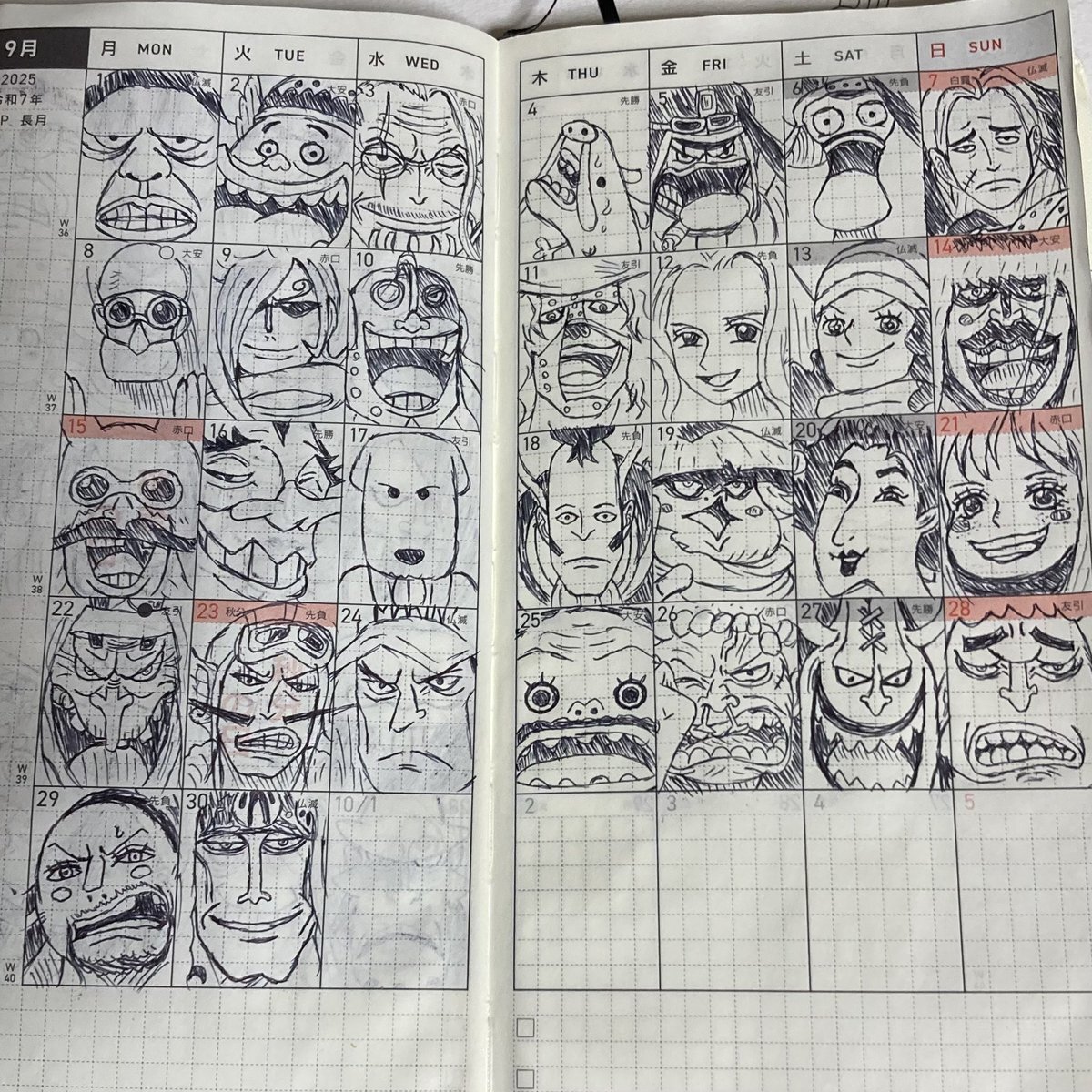 #ねじのほぼ日ワンピ絵しりとり 9月編! ワノ国のキャラが少し多めですねー 一番♡が多かったキャラは25♡でレイリー…と思いきや27♡でイッシー20でした お前らかよっ!!! レイリーだろ普通!! あと3ヶ月だー! #ONEPIECE #今月描いた絵を晒そう pic.x.com/uAnQeJvQtu