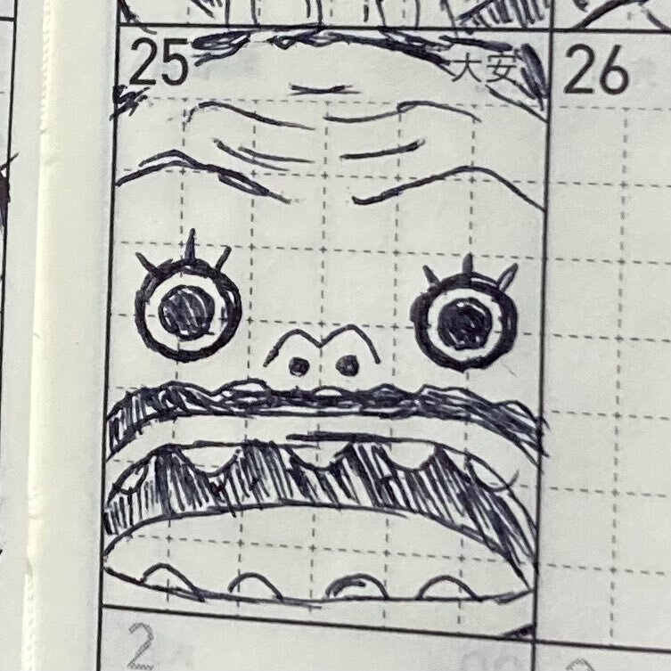 #ねじのほぼ日ワンピ絵しりとり 265日目 「黒炭ひぐらし」 𝙉𝙚𝙭𝙩 ︎ ⇝ 「シ」 んニキョキョキョキョ!! マネマネの実前任者 そしてお気づきですか? 今日で265日目という事は…残り100日です カウントダウンは始まった TO BE CONTINUED➡︎ #ONEPIECE #黒炭ひぐらし #ひぐらし pic.x.com/urkRm9GIsI