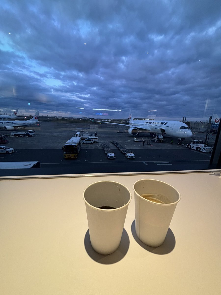 JAL971便6時30分発で石垣島行ってきま〜す✈️ 6時からラウンジでモーニング☕️ 羽田空港は曇り☁️台風の影響で石垣島は雨☔ #のぶ整体院 #のぶ整体院7周年記念 #国分寺 #恋ヶ窪 #羽田空港 #羽田空港第1ターミナル #石垣島 #空港ラウンジ pic.x.com/bMxHjkgvGG