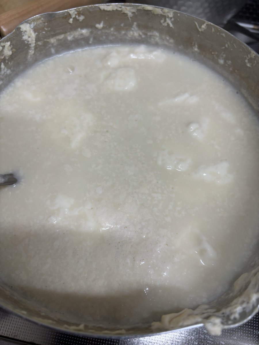 鉱泉鍋❤️チョット炭酸入っていて薄茶色🤎 鉱泉水2本に普通の木綿豆腐一丁と絹ごし豆腐一丁😍 ひたすら食べずにくつくつ煮込む♨️ 豆腐が全て溶けて豆乳鍋🍲 メチャクチャ美味い😋 明日は豆乳雑炊だな🥣 #のぶ整体院 #のぶ整体院7周年記念 #国分寺 #恋ヶ窪 #鉱泉水 #鉱泉鍋 pic.x.com/9WGJ5cC6fh