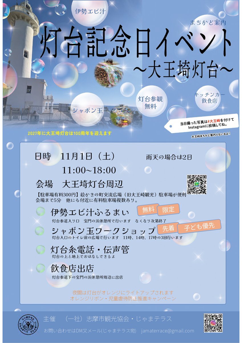 11/1日(土)は #大王埼灯台 で灯台記念日イベントが開催予定!灯台参観無料、伊勢エビ汁ふるまいなど盛りだくさん! 安乗漁港周辺では、#あのりふぐ 祭り(10/26→11/1に変更)が開催!豪華ふぐセットの販売や伊勢海老釣り、ふぐ釣り合戦も。ぜひお越しください! #志摩市 #安乗埼灯台 #のぼれる灯台 pic.x.com/1VJ33fEHup