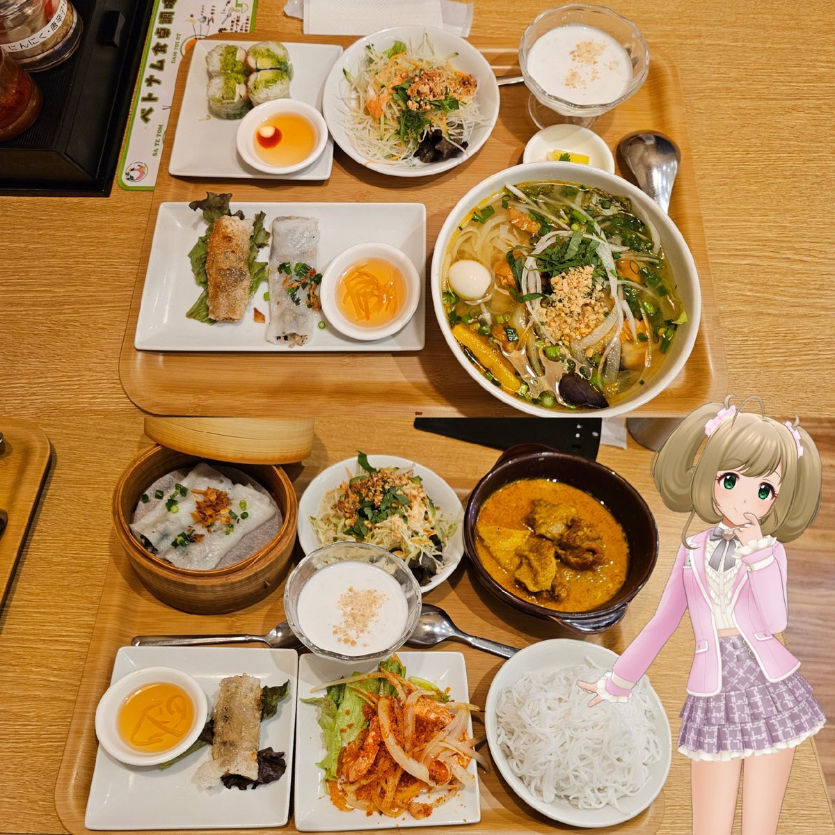 木曜ランチ☀️🍴 越谷レイクタウンmoriの「ジャスミンパレス」 豚角煮と揚茄子のフォーとアボカドの生春巻きのセット ベトナムチキンカレーと海老バター焼のセット パクチーは別皿なので苦手な人にも優しい なかなか美味しかった☆ #アイマスP食いしん坊隊 #デレスポAR #佐藤心 #はぁとのごはん pic.x.com/pF0zACNZSx